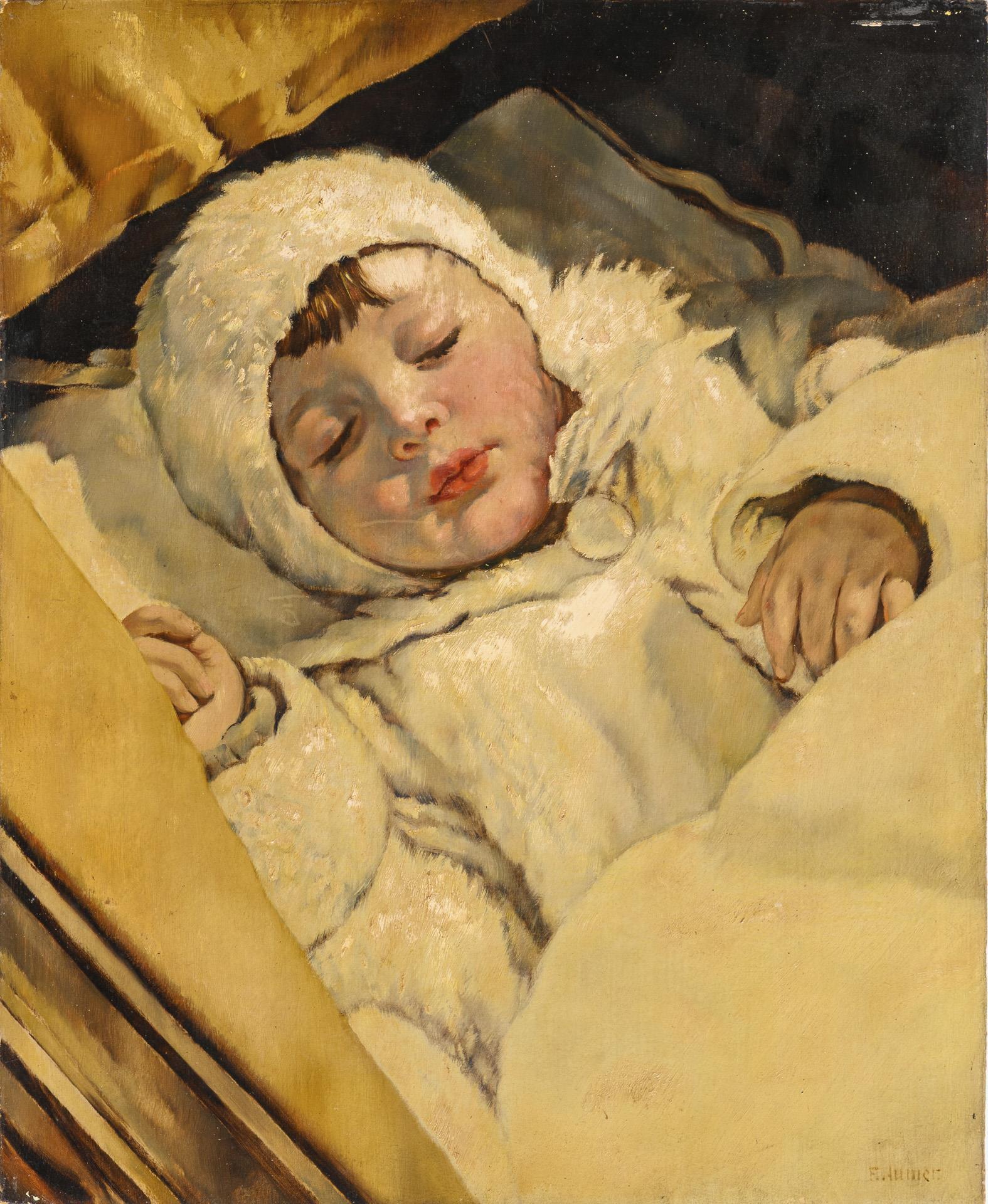 AUMER, Franz (1896 Obing - 1983 Grabenstätt): Schlafendes Kind.