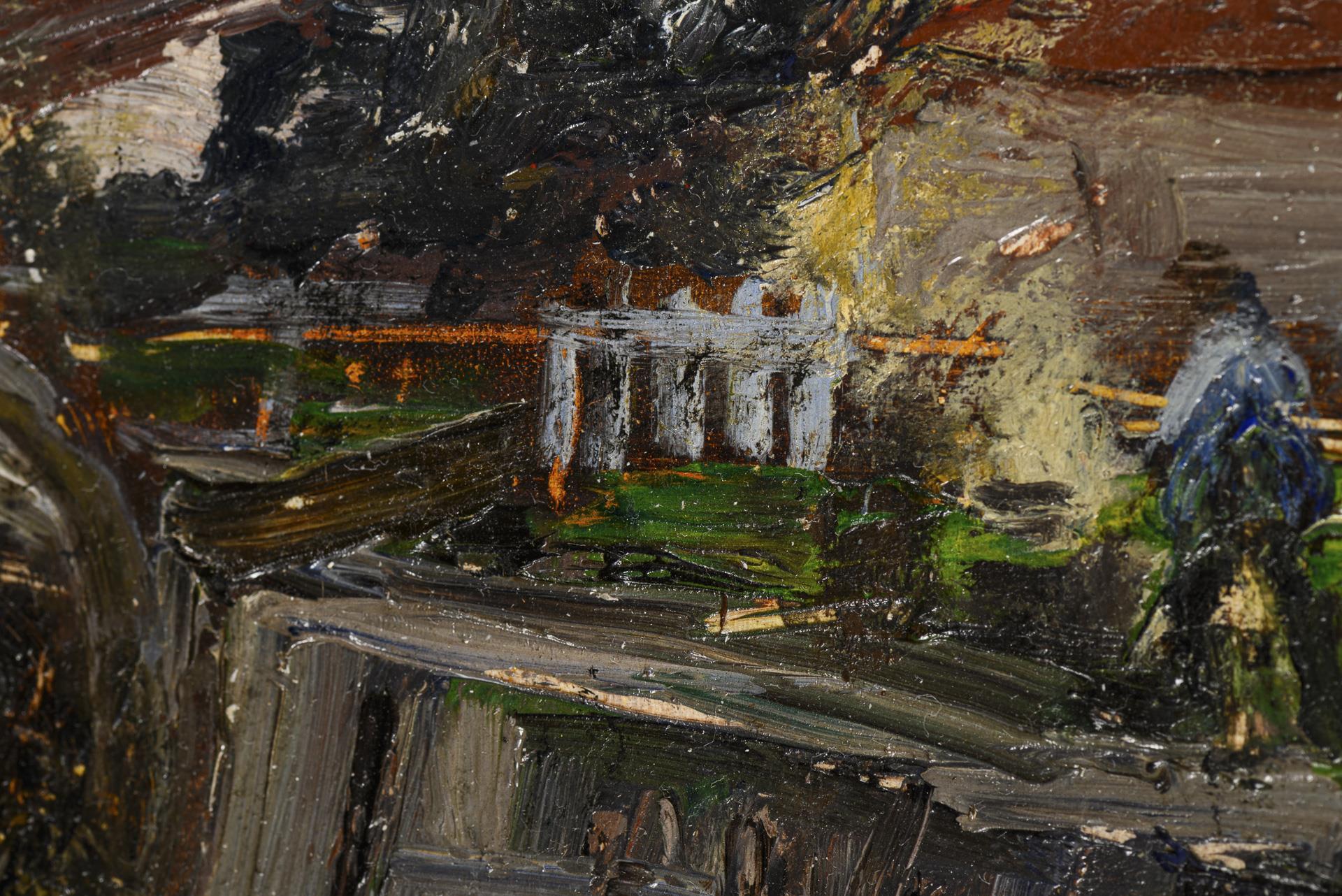 Öl/Holz. Links unten signiert, verso Klebezettel der Jahresausstellung München 1896 mit Nr. 835. 39 x 27 cm. Gerahmt: 62 x 51 cm (Goldstuckrahmen).