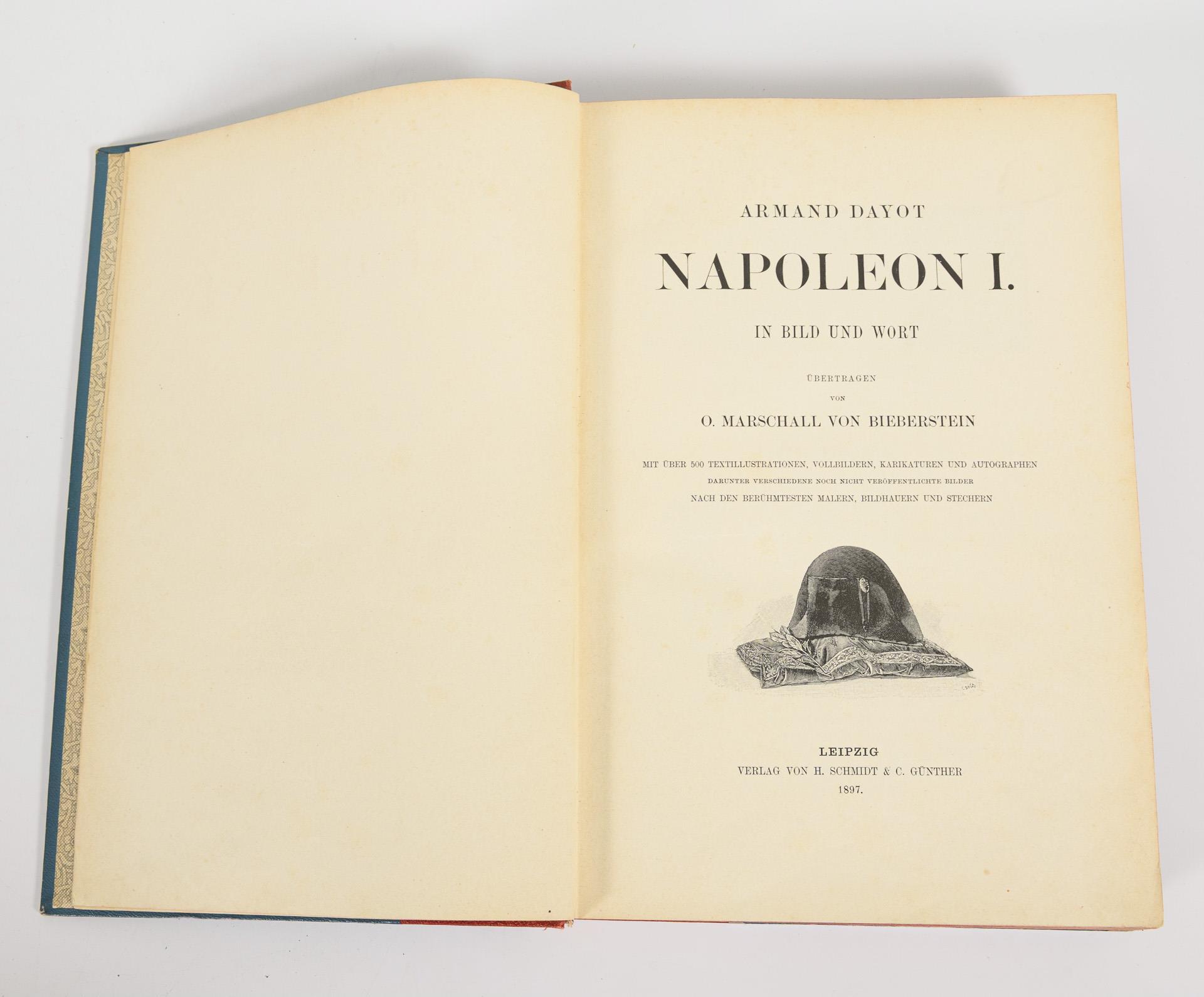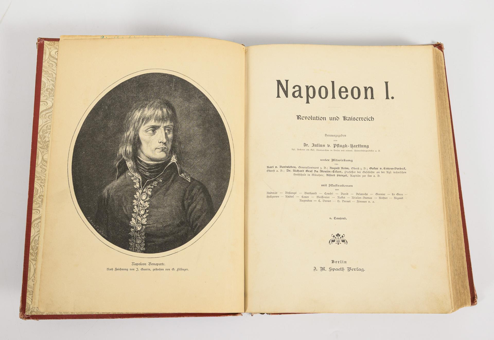 v. Pflugk-Hartung: "Das Erwachen der Völker", Berlin, Spaeth-Verlag, (1901), 2 Bände. / Dayot, Armand: "Napoleon in Bild und Wort", Verlag von Schmidt & Günther, Leipzig 1897, 503 Seiten. Beide mit vielen Abbildungen und im farbig geprägten Leineneinband. Beide mit stärkeren Gebrauchsspuren, ein Buch mit losen Anfangsseiten.