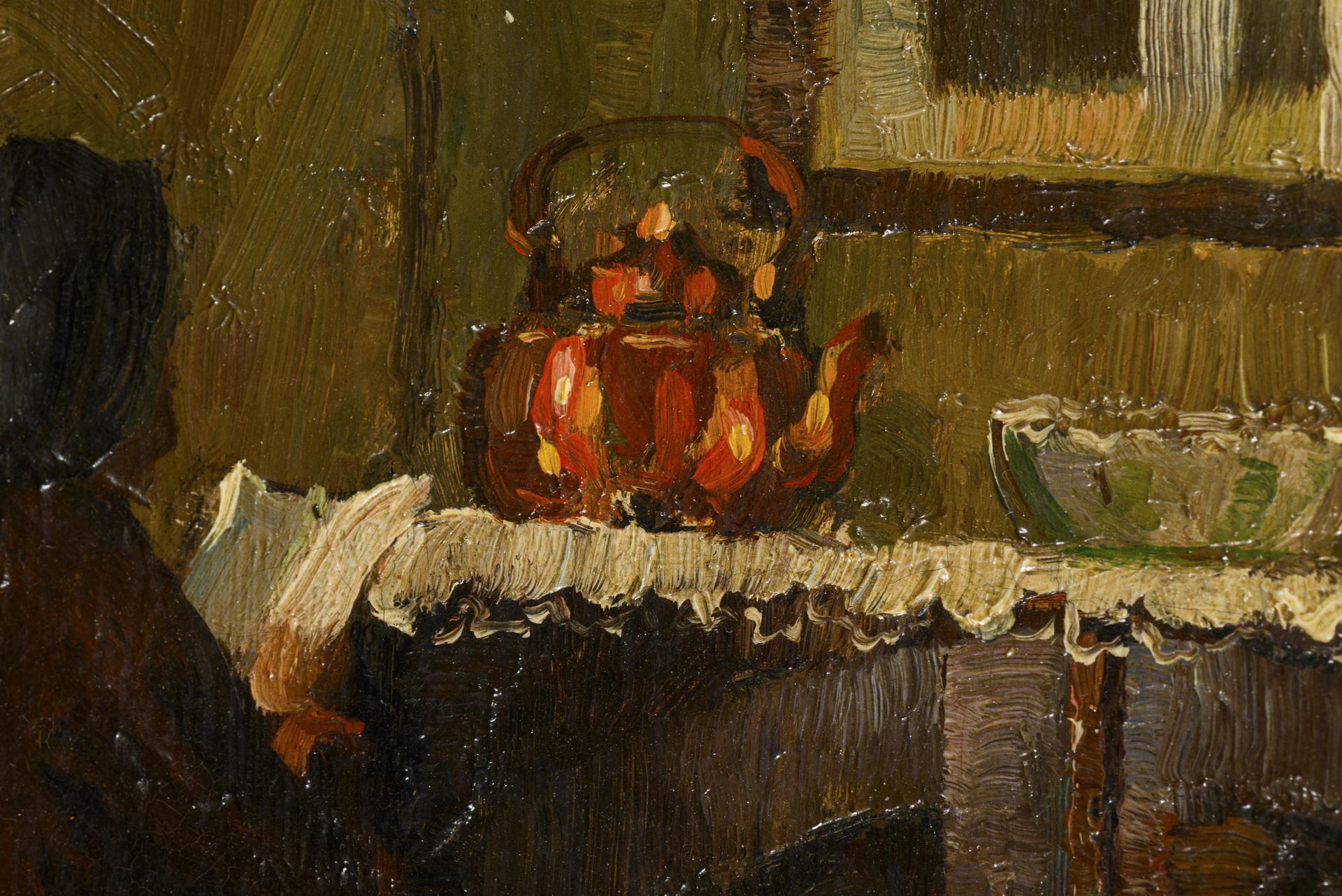 Undeutlich signiert: Interieur mit Staffage