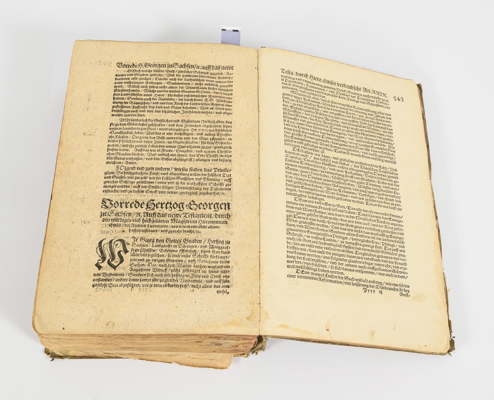 Titelblatt fehlt. Entspricht im Vergleich VD16 L3395. (3), 547 Blatt (erstes Blatt mit Widmungsholzschnitt, letztes Blatt mit Nummerierungsfehler), im grauen Pergamenteinband. Kleinere Anstreichungen im Text und handschriftlicher Text im Vorsatz. Stärkere Altersspuren, Deckel, Rücken und erste Seiten lose, Block sonst fest.