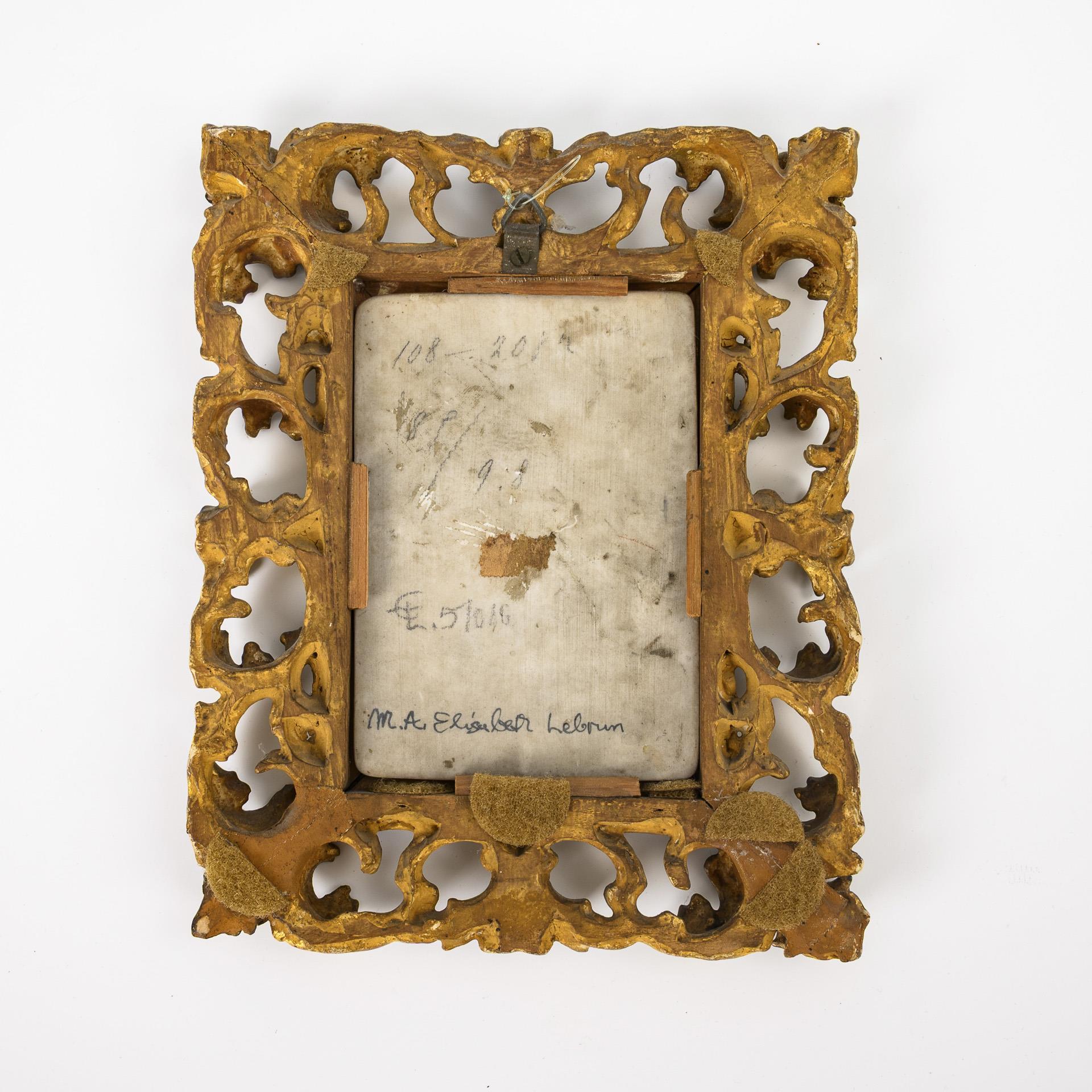 Rechteckige Platte mit dem Selbstporträt der Malerin Elisabeth Vigée-Lebrun vor der Staffelei.