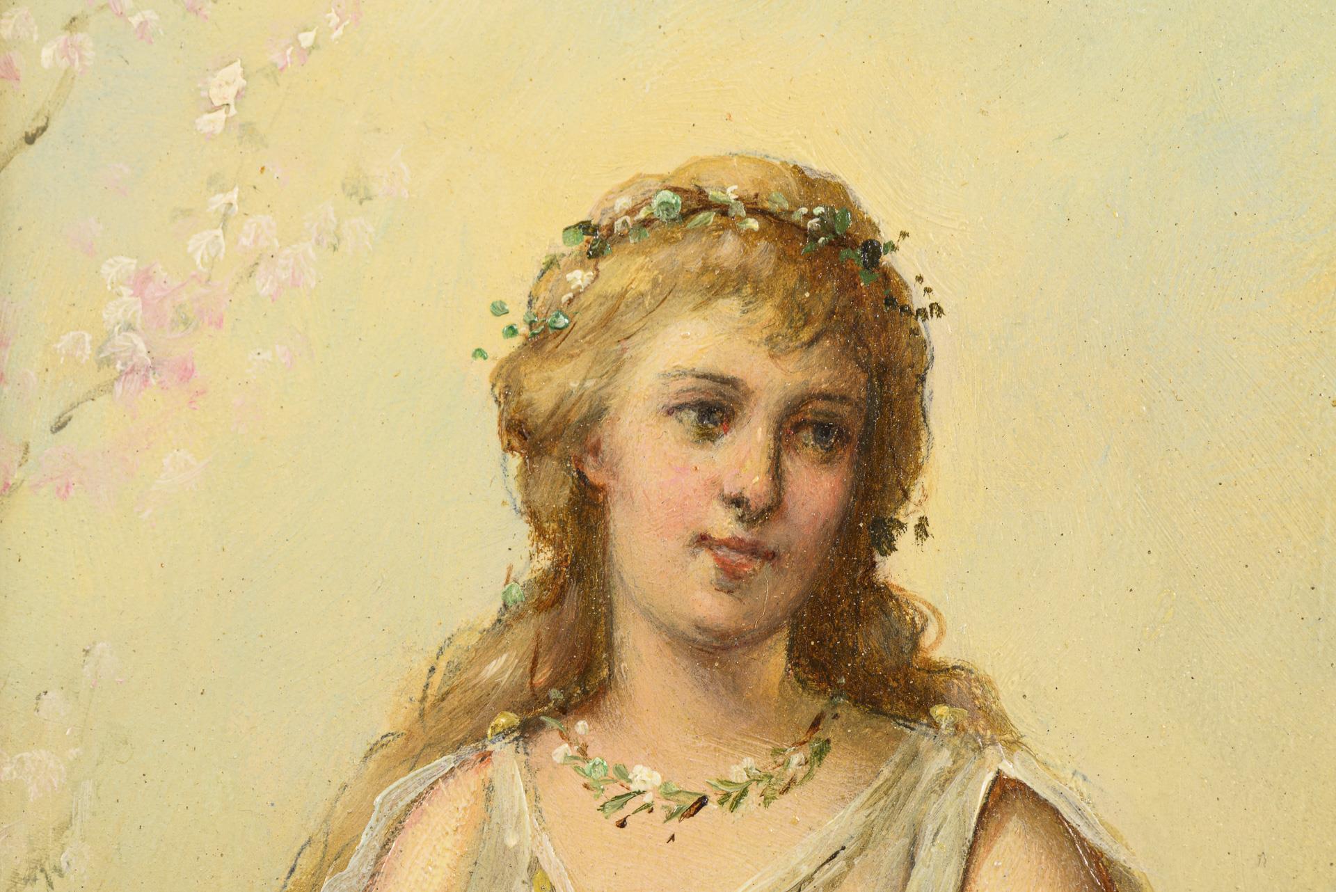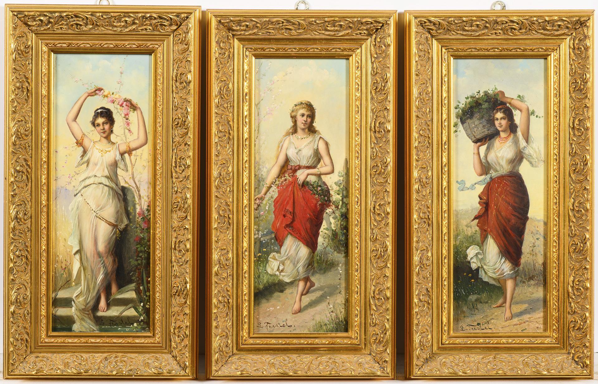 Drei Gemälde mit jungen Mädchen als Jahreszeitenallegorien