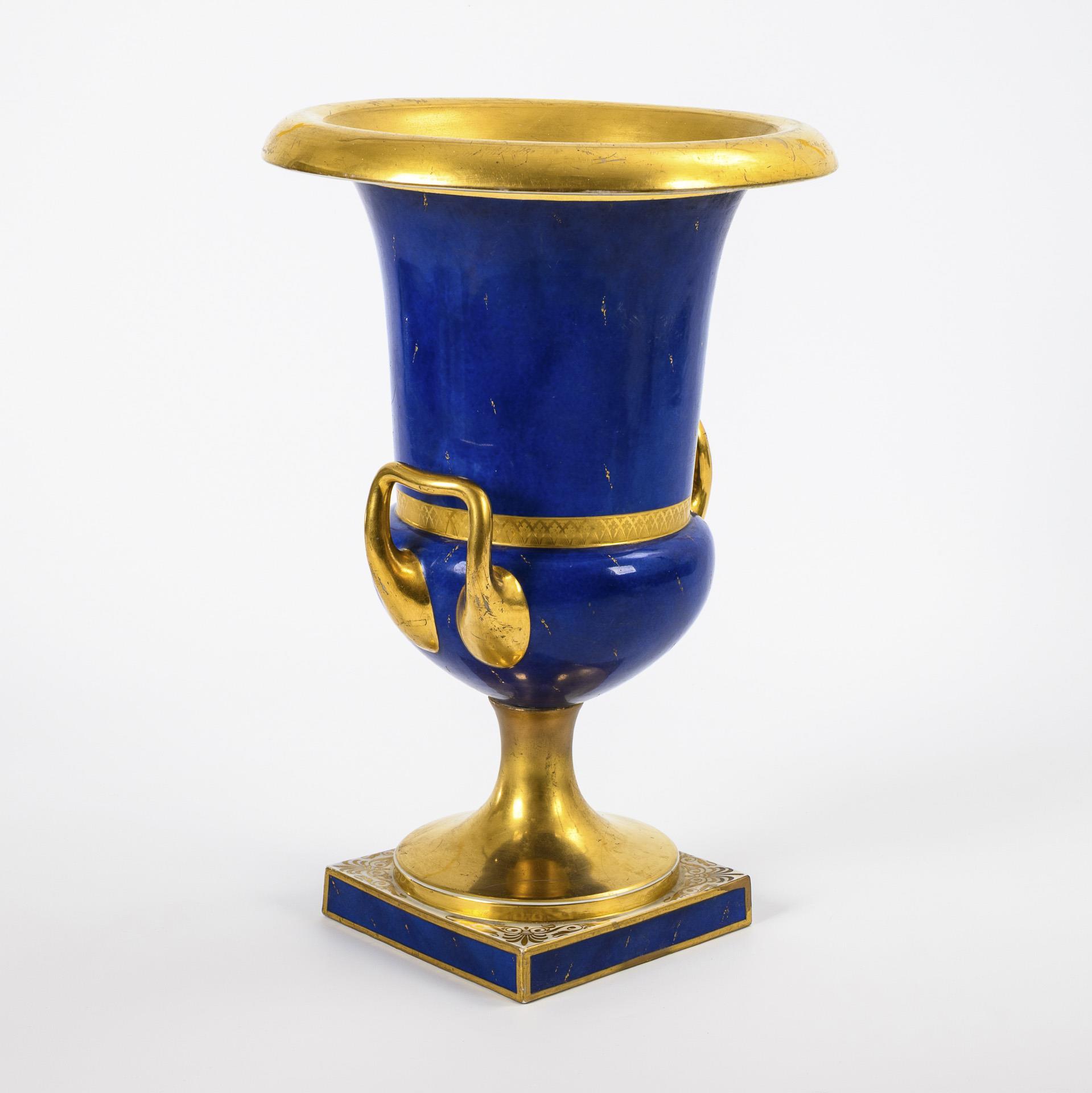 Große Kratervase mit königsblauem Fond. KPM Berlin.