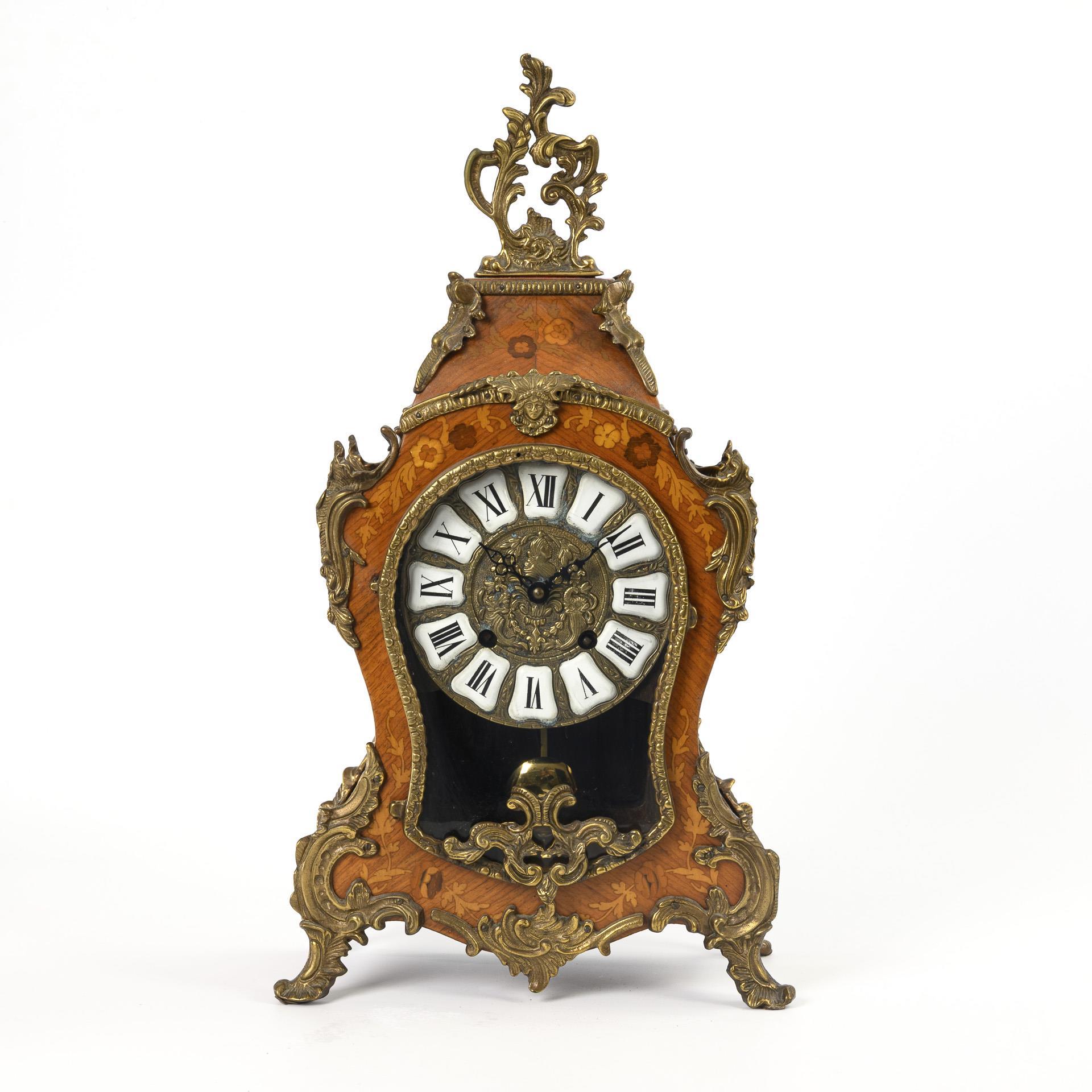 Neobarocke Kommodenuhr mit floralen Marketerien.