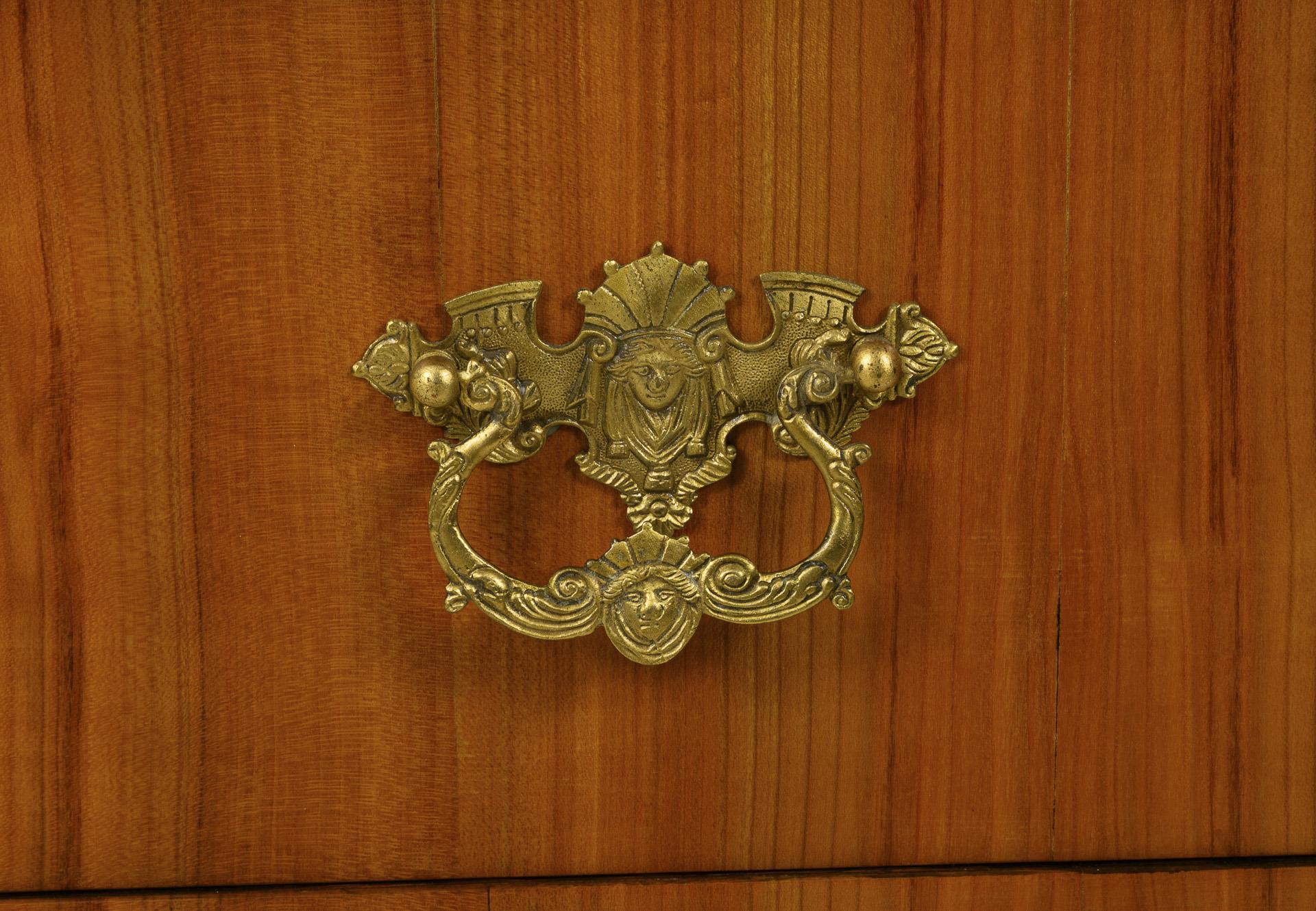 Kirschbaum und andere Hölzer, massiv und furniert, teilebonisiert. Ca. 154,5 x 102 x 57,5 cm.