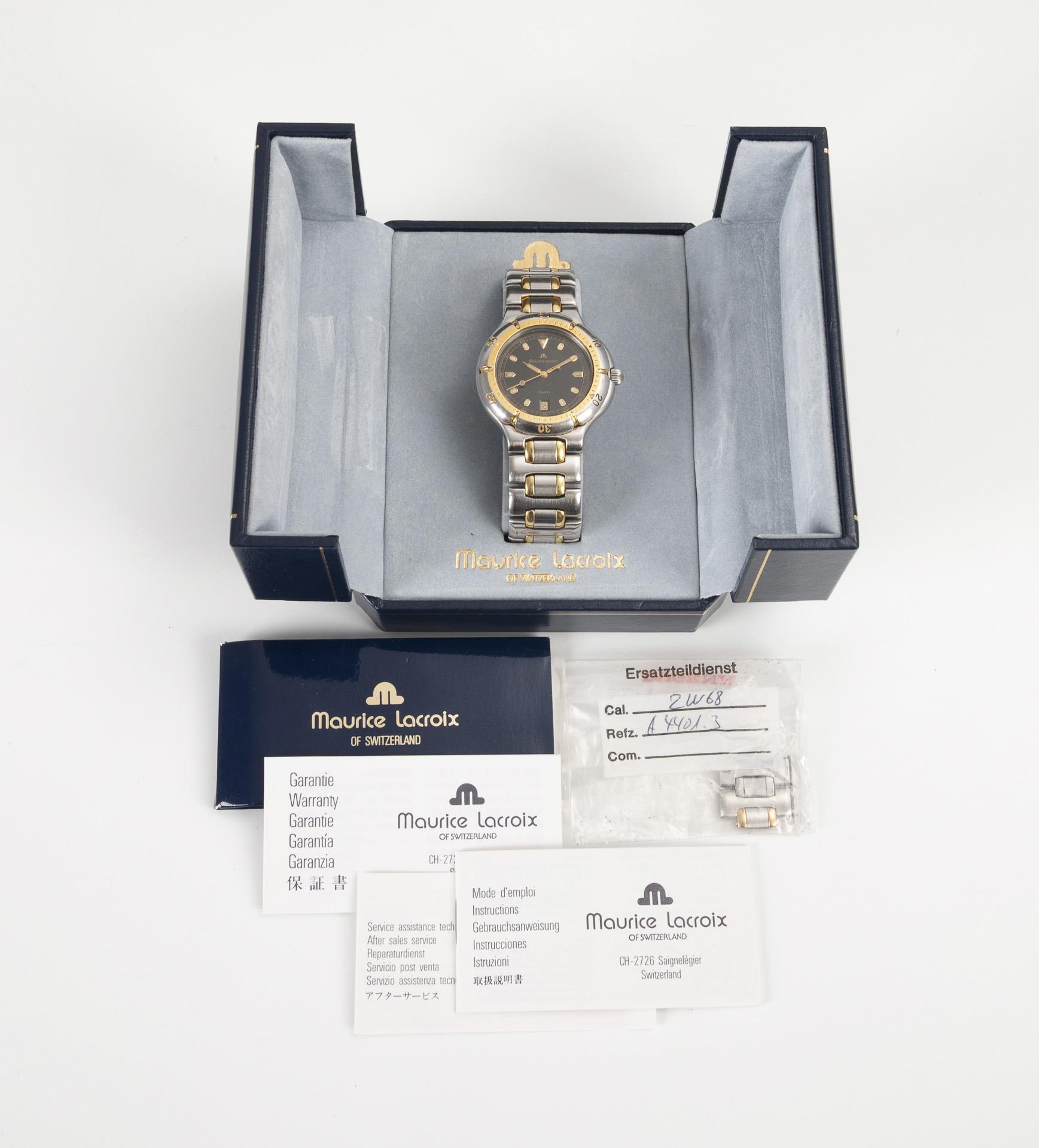 In blauem Maurice Lacroix-Etui mit Papieren.