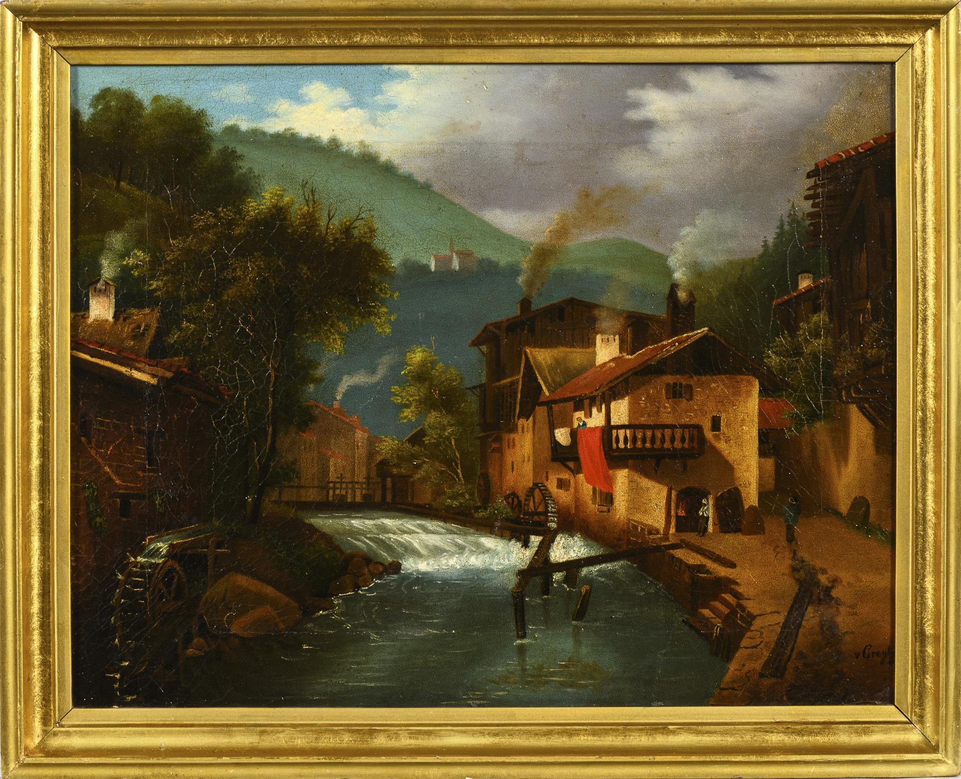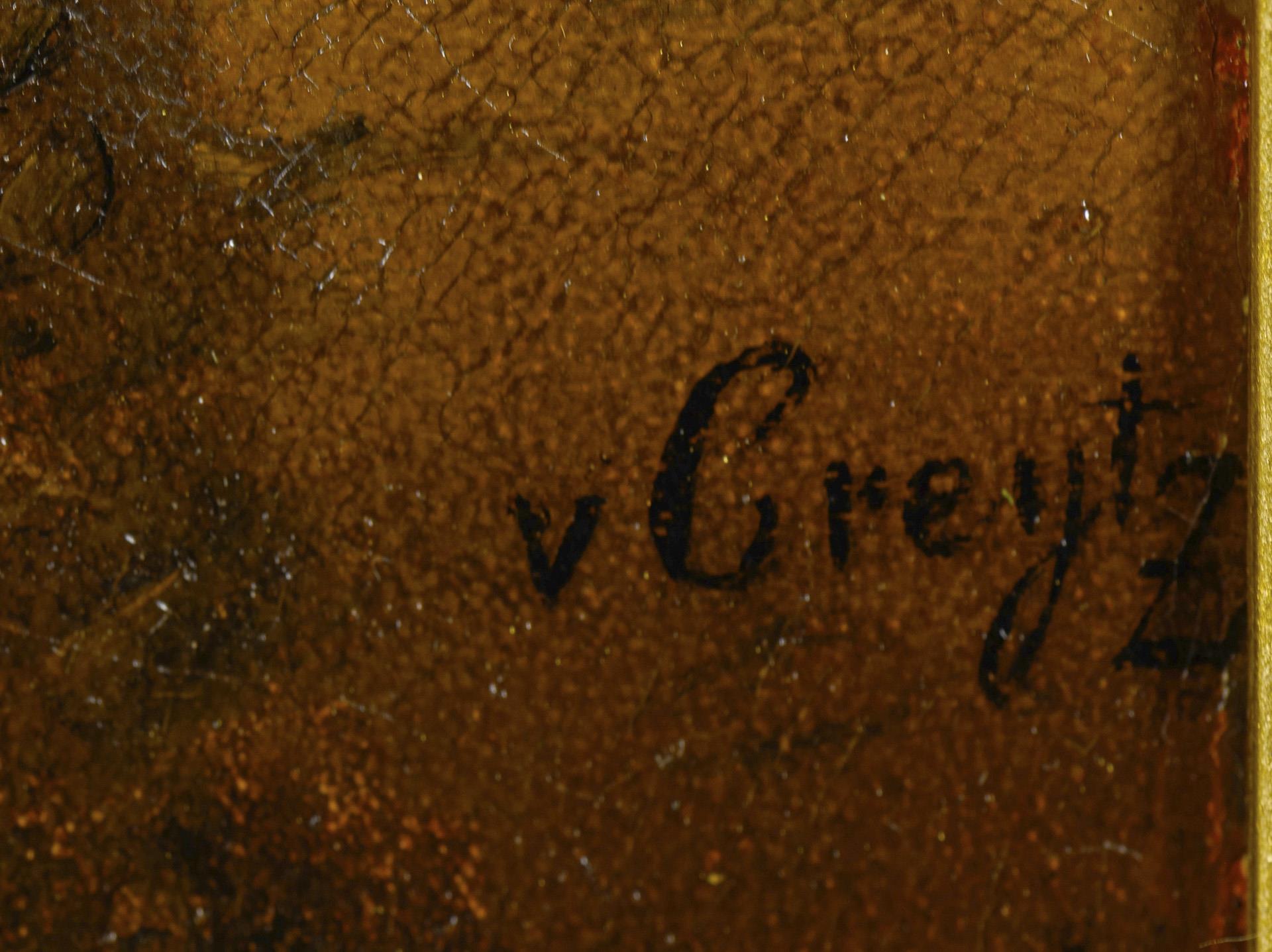 Öl/Leinwand. Rechts unten undeutlich "v Greytz"? signiert, verso betitelt mit Widmung. Juli 1868.