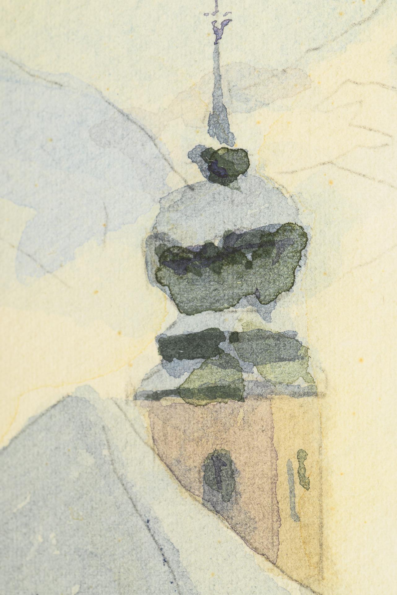 Passepartoutausschnitt 35 x 49,5 cm. Gerahmt & hinter Glas : 55,5 x 69,5 cm (Goldrahmen).