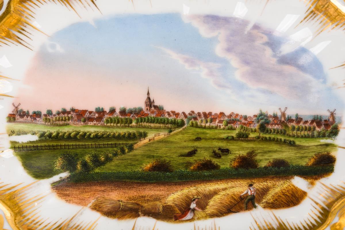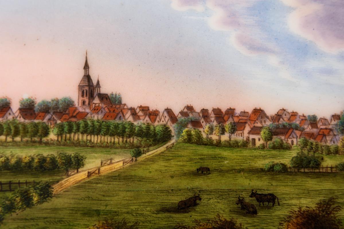 Im Spiegel die verso bezeichnete Ansicht der Stadt Meldorf in Schleswig-Holstein.
