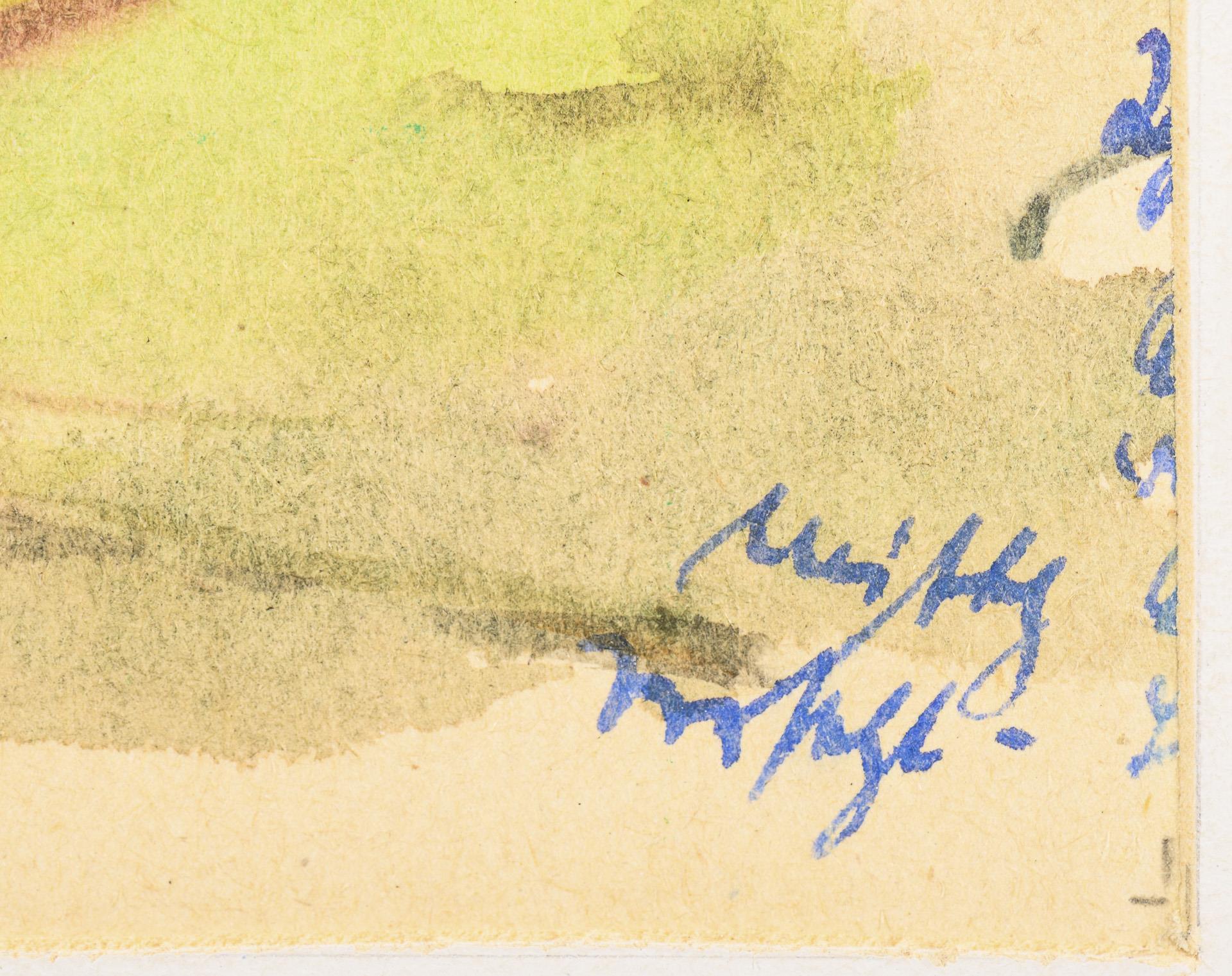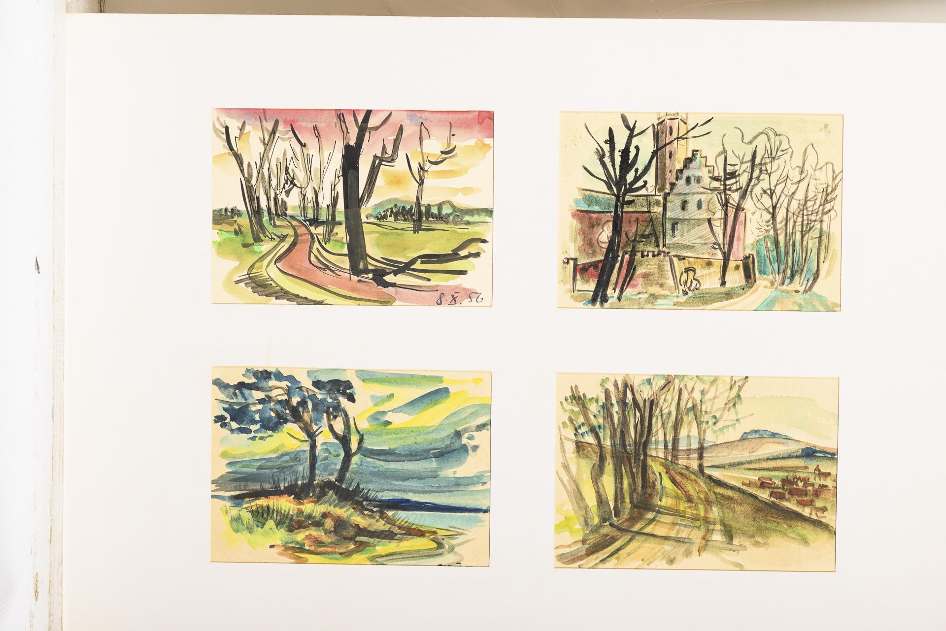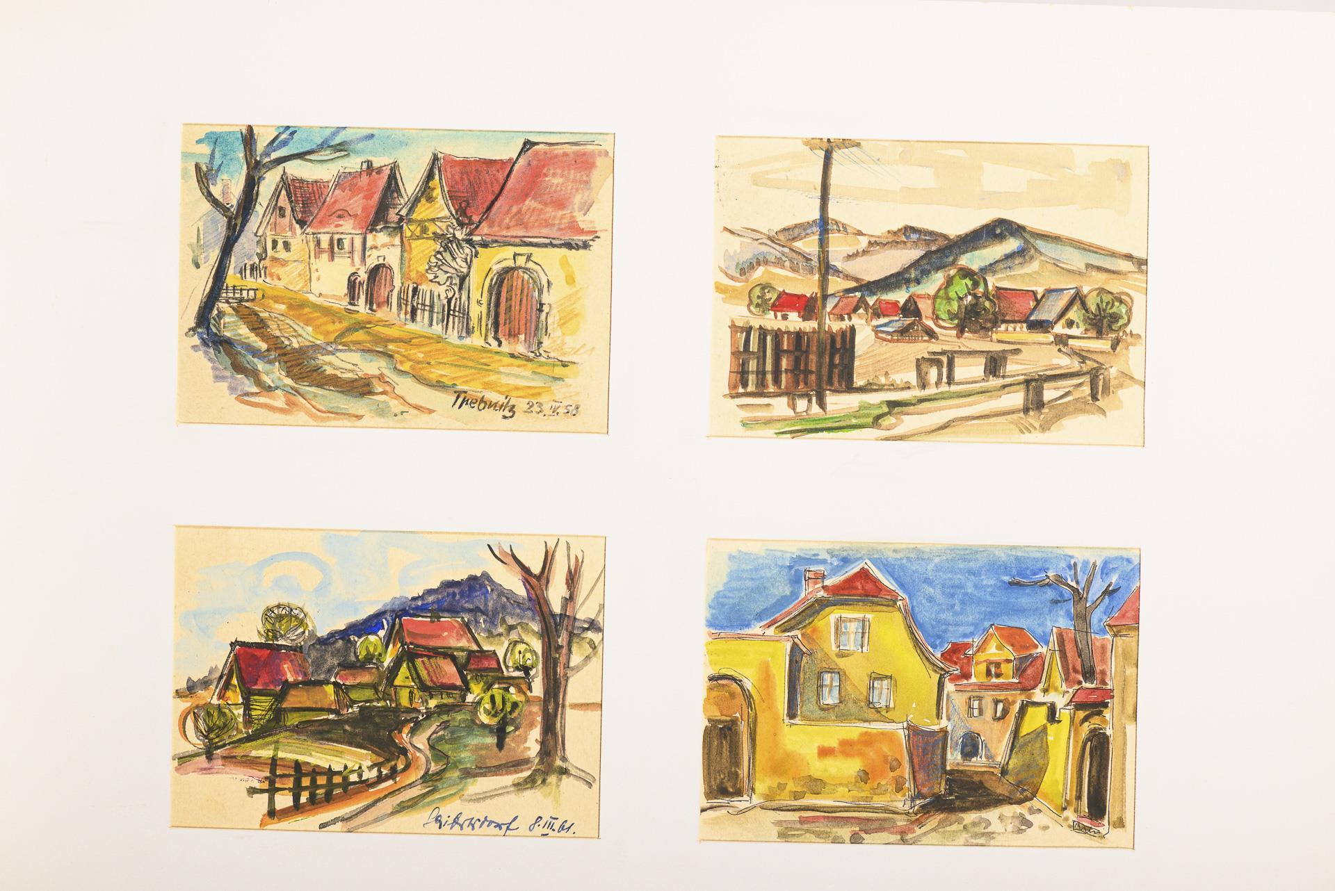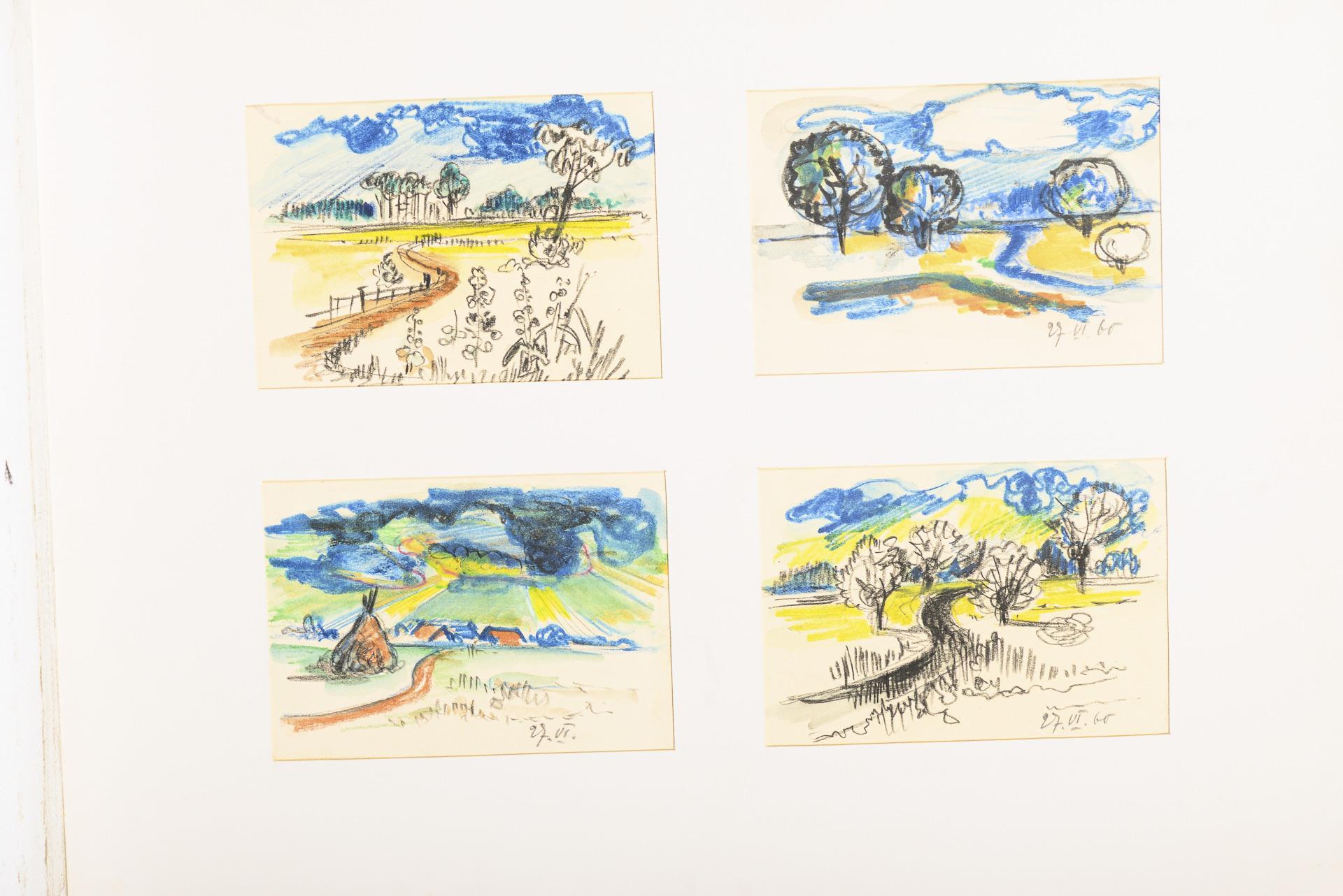 Farbstift, Bleistift, Tusche, Aquarell. In der Mappe bezeichnet.