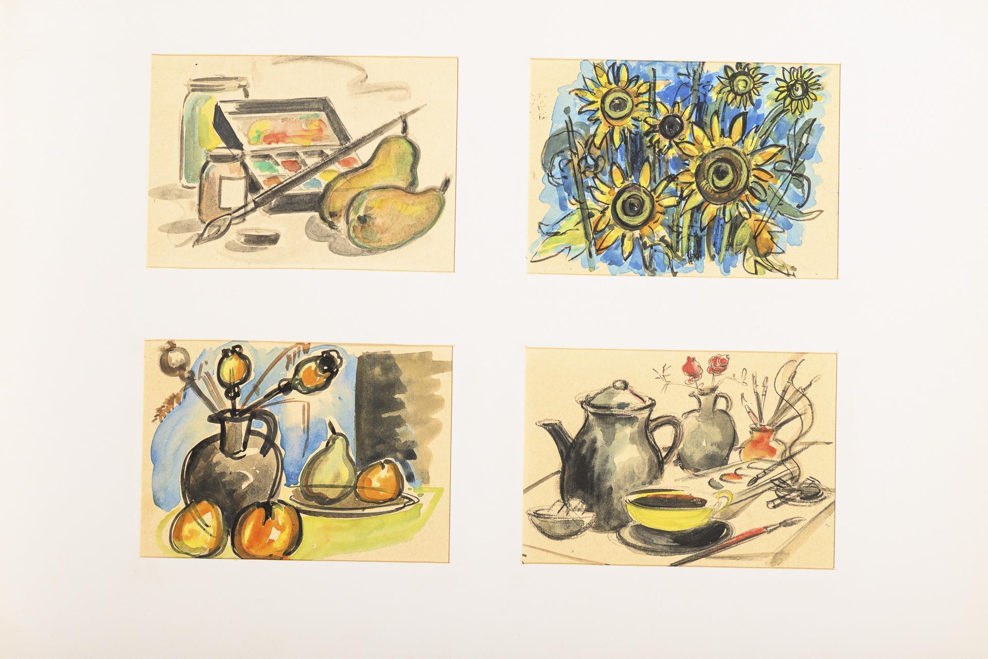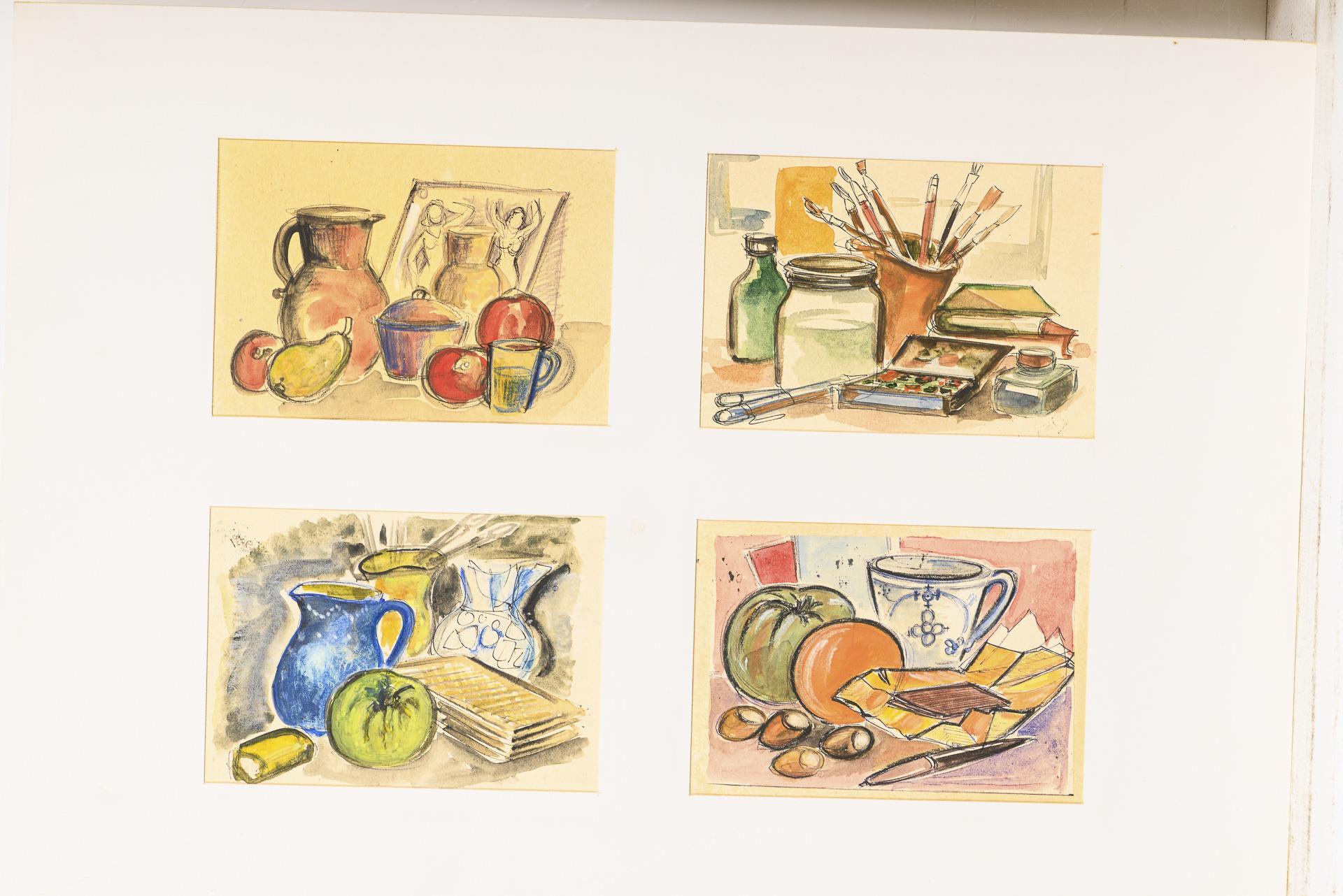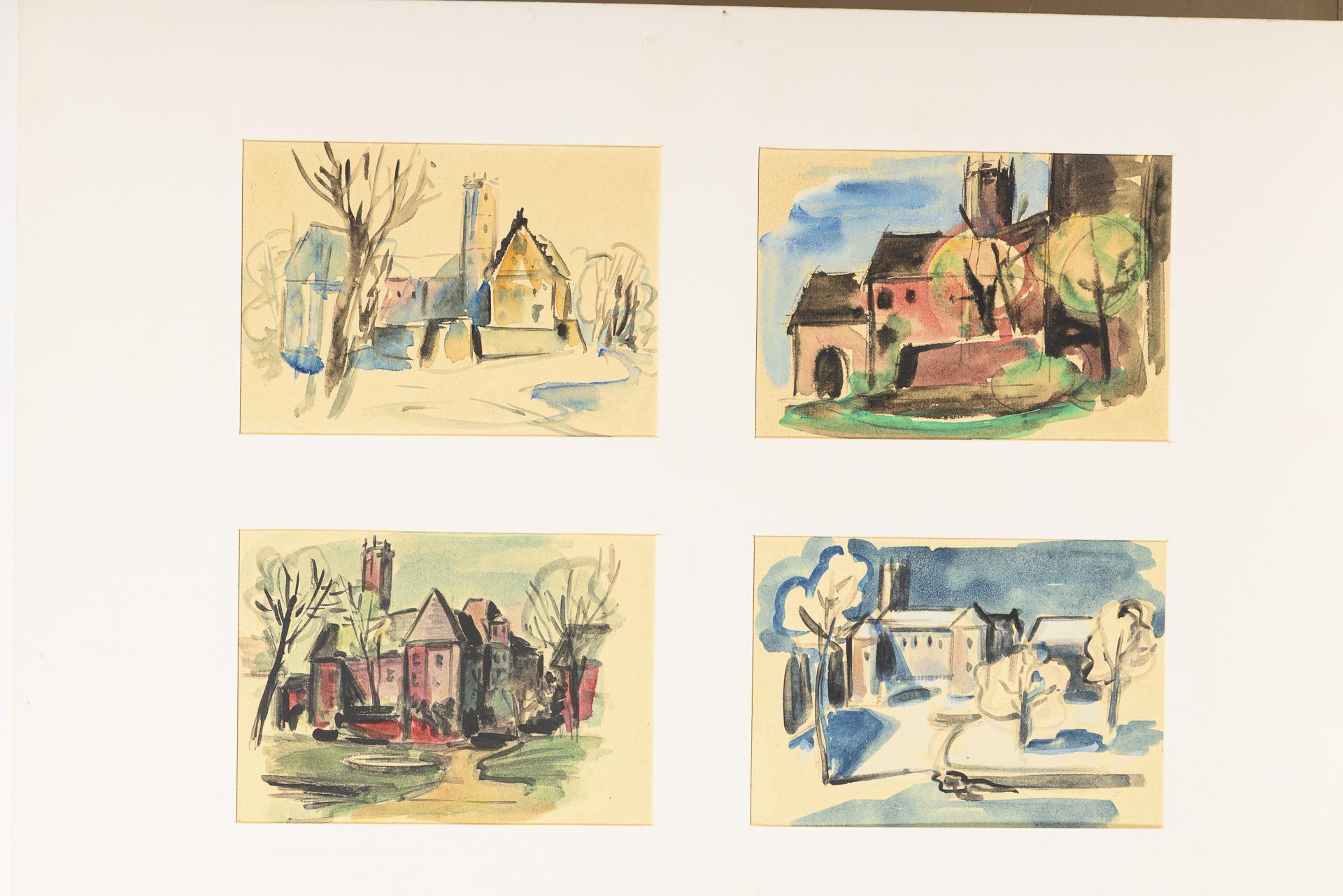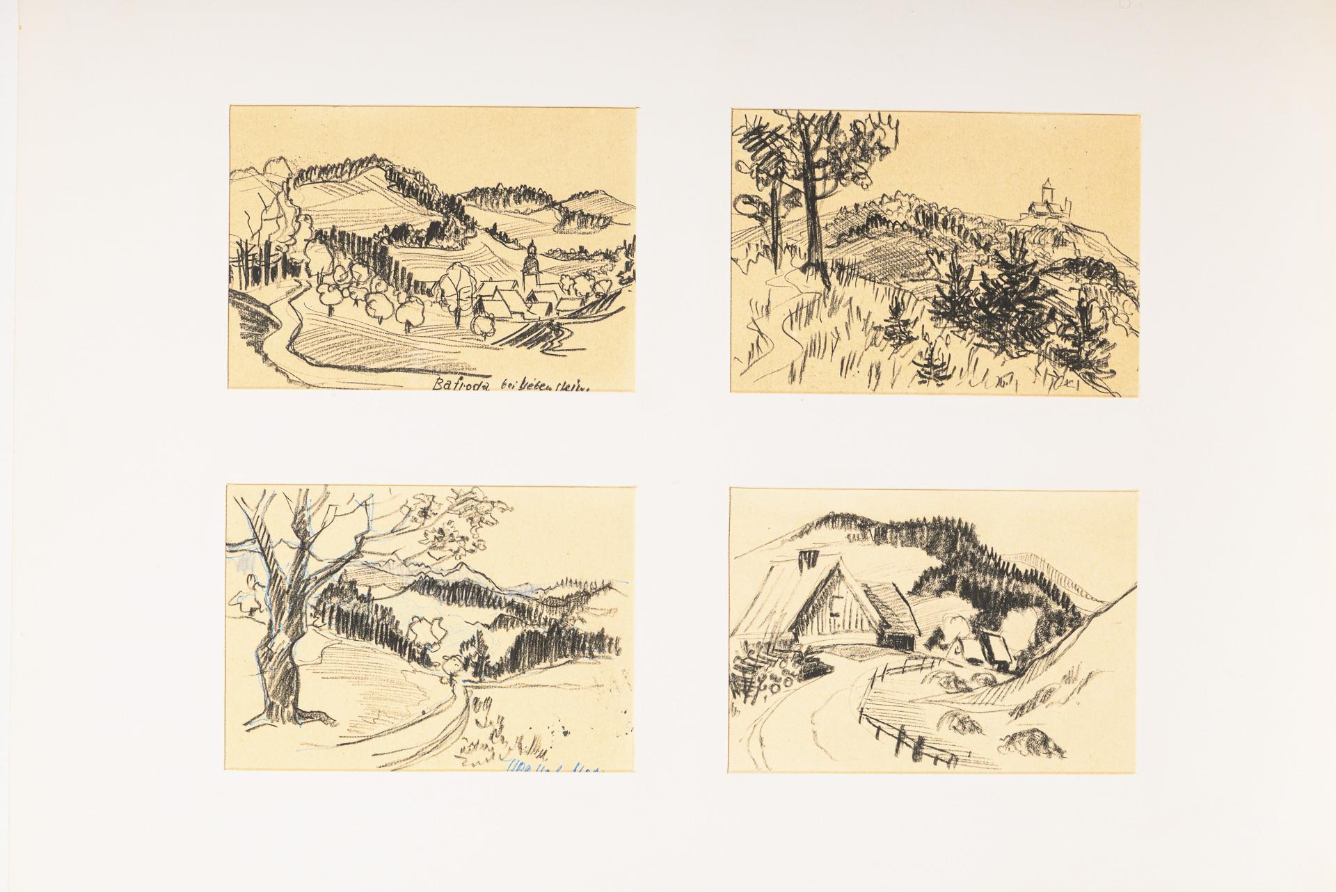 Farbstift, Bleistift, Tusche, Aquarell. In der Mappe bezeichnet.