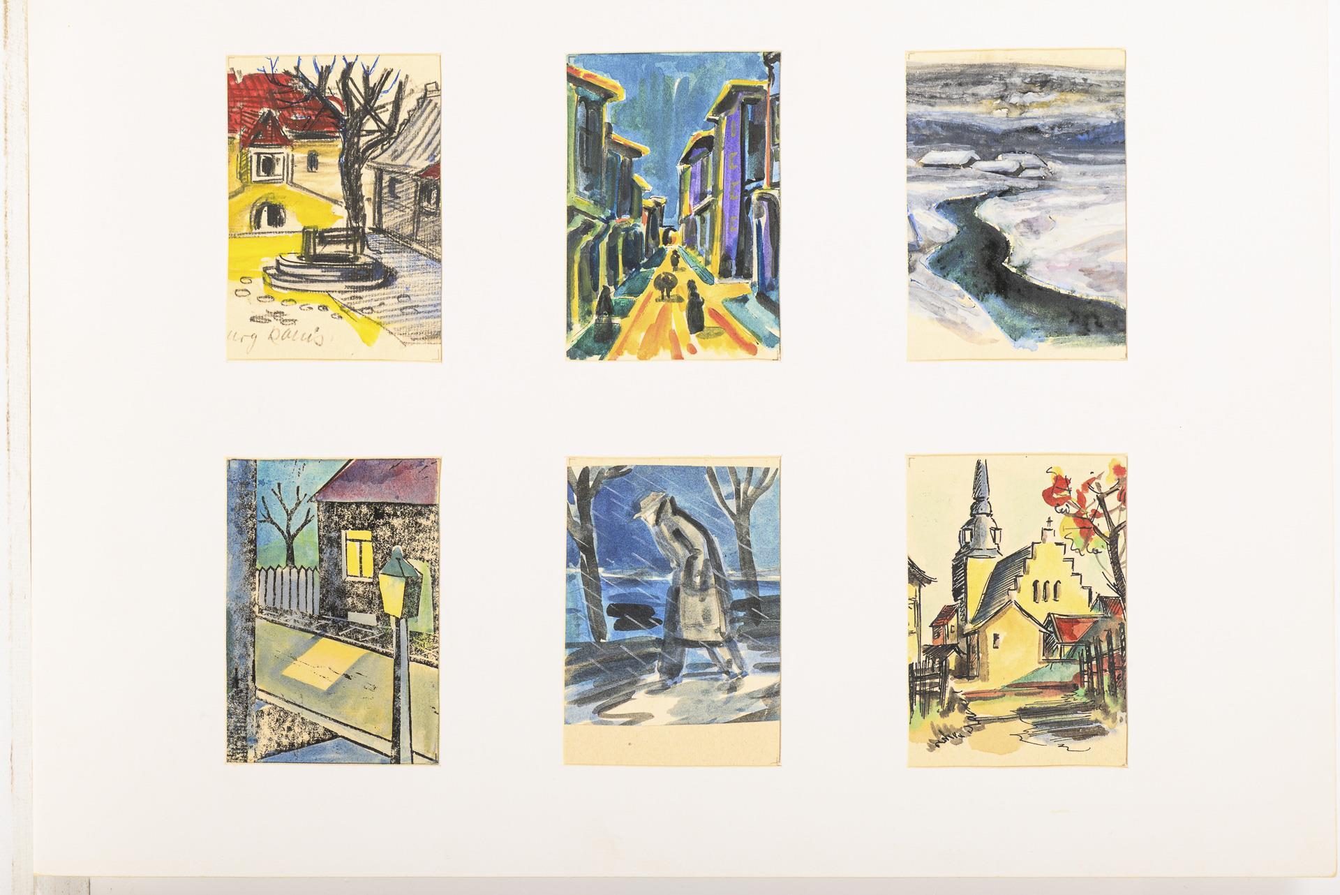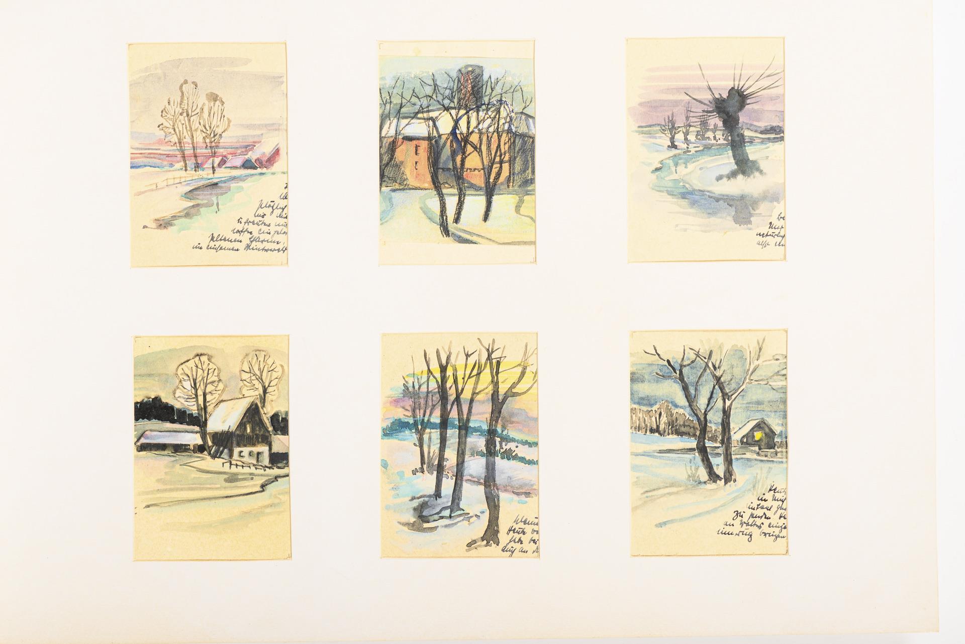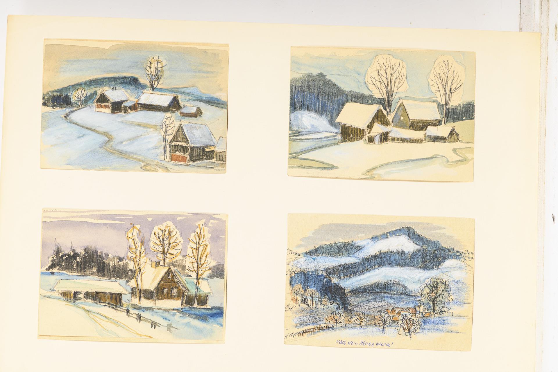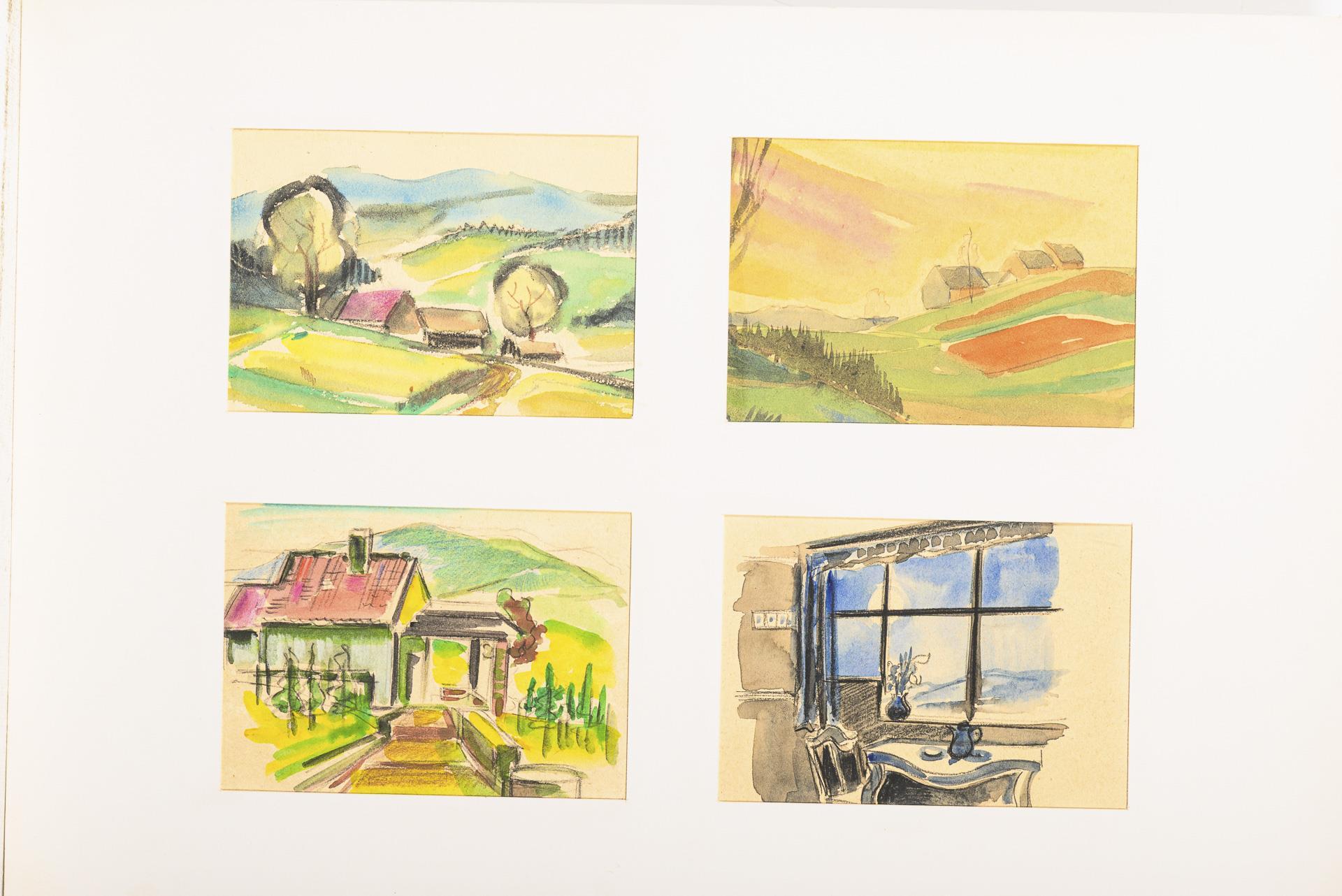 Landschaften, Seestücke, Tierdarstellungen, Stillleben oder Genreszenen, je vier oder sechs Motive auf einem Blatt, sowohl mit als auch ohne Passepartout.