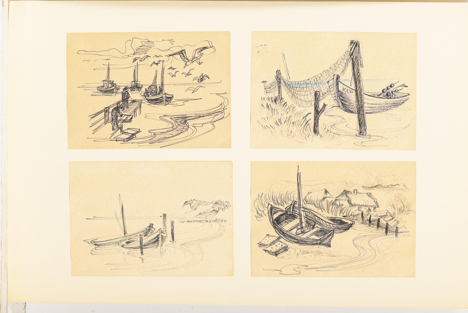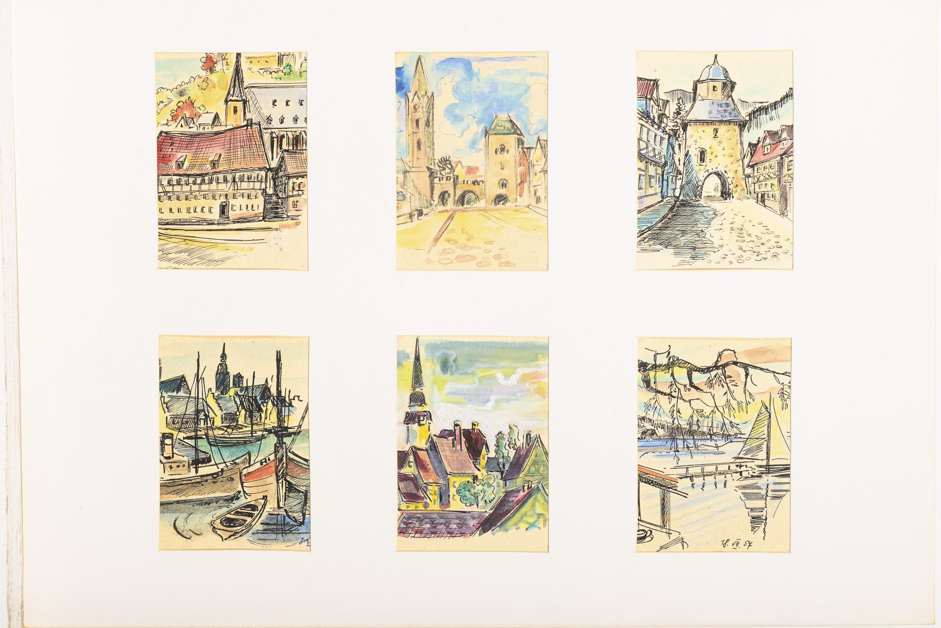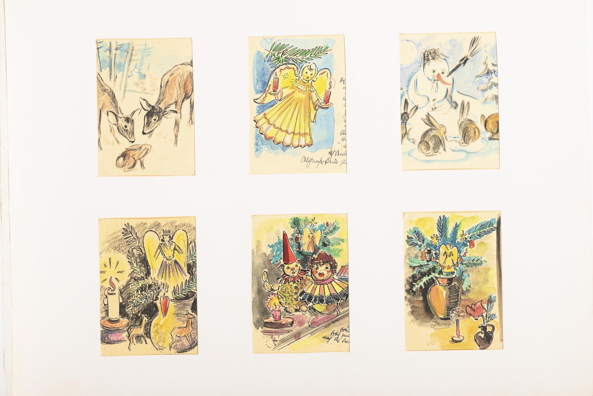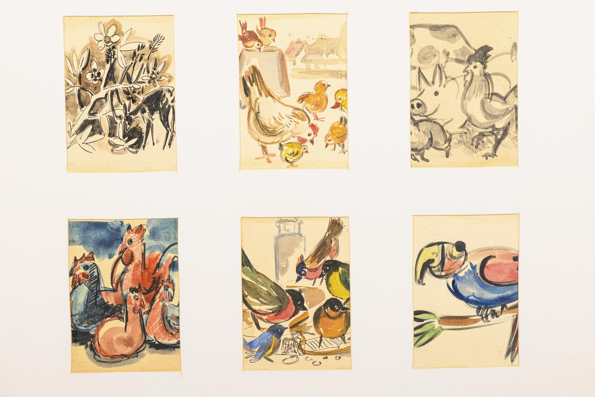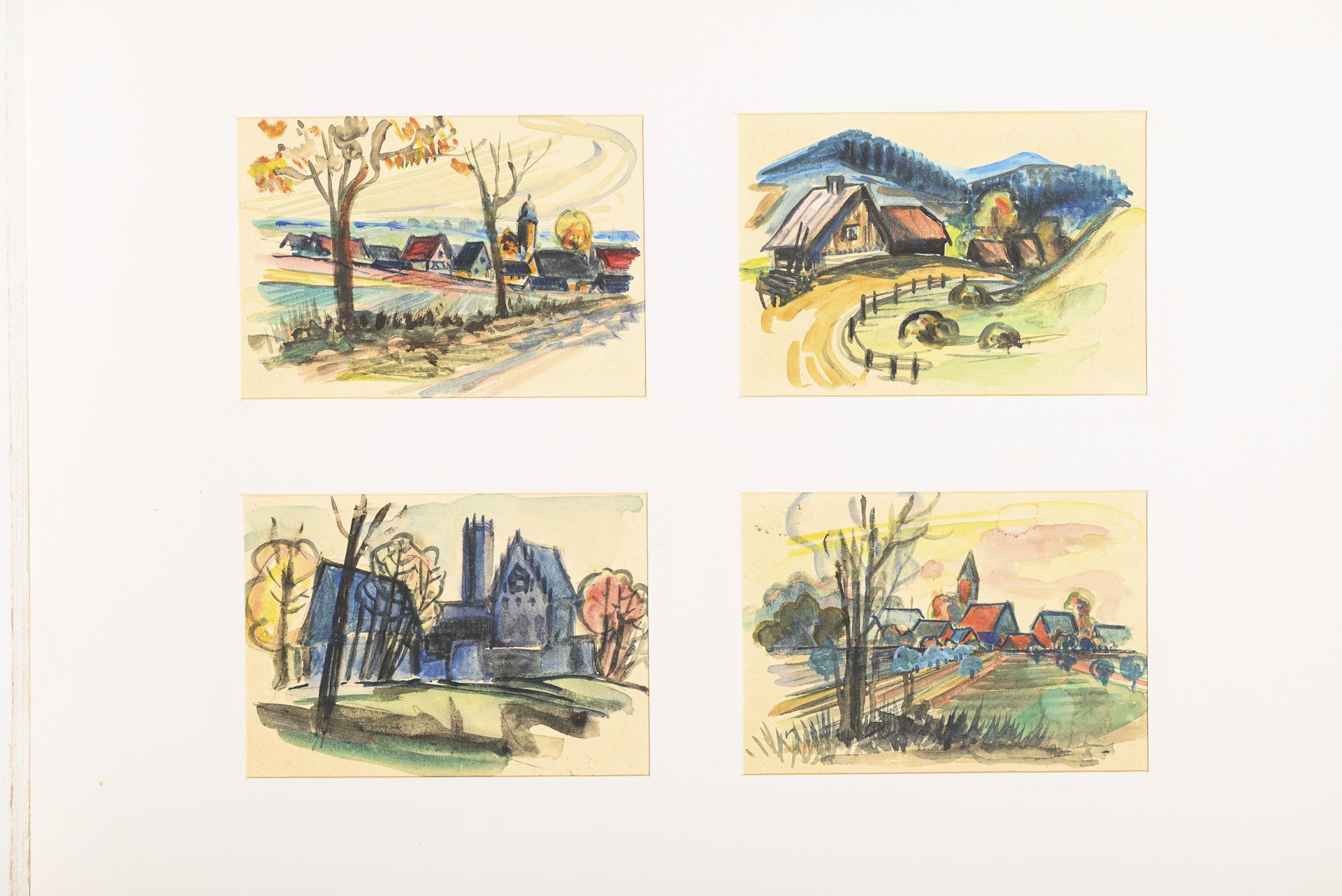Landschaften, Seestücke, Tierdarstellungen, Stillleben oder Genreszenen, je vier oder sechs Motive auf einem Blatt, sowohl mit als auch ohne Passepartout.