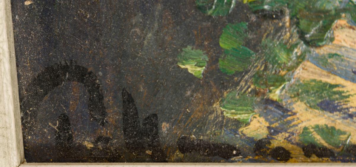 Öl/Malkarton. Links unten undeutlich signiert. Wohl um 1900.