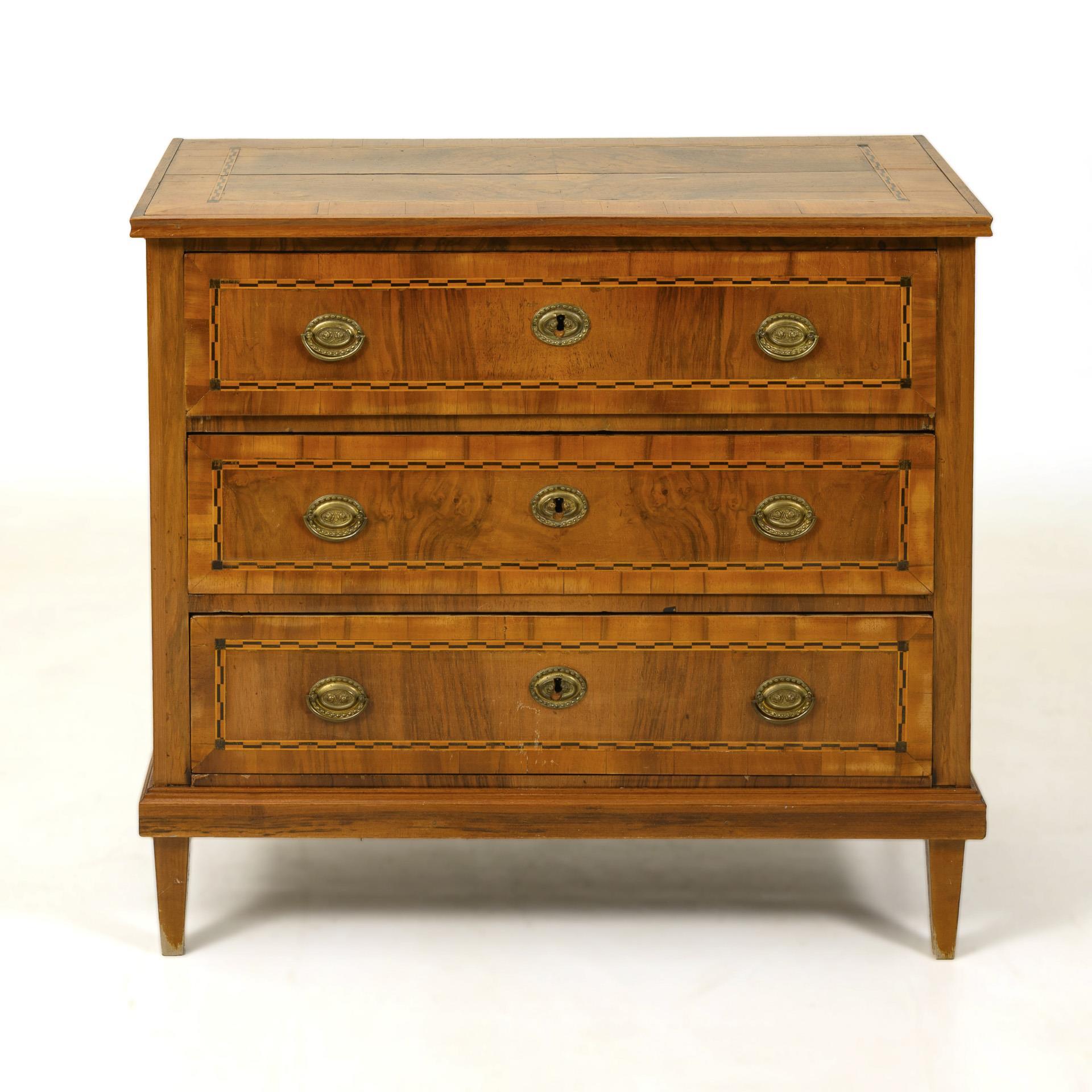 Klassizistische Kommode mit Intarsienbändern.