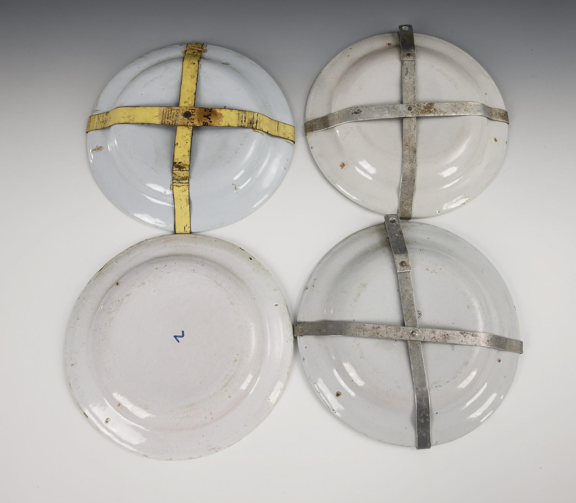 4 Fayence-Spruchteller. Wohl Süddeutschland.