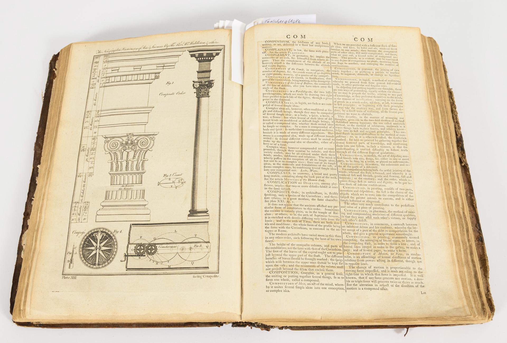 Kupferstich, Titelblatt, (2), unnummerierte Seiten, zweispaltig gedruckt von A-Z, (4) Seiten. Mit 27 ganzseitigen Kupferstichen. Es fehlen wohl 10 Kupferstiche, und mit diesen wurden auch Textseiten entfernt, Aufstellung kann erfragt werden. Im Ledereinband. Rücken defekt, Einband stark beansprucht, einige Seiten geklebt, bzw. mit Schnittspuren.