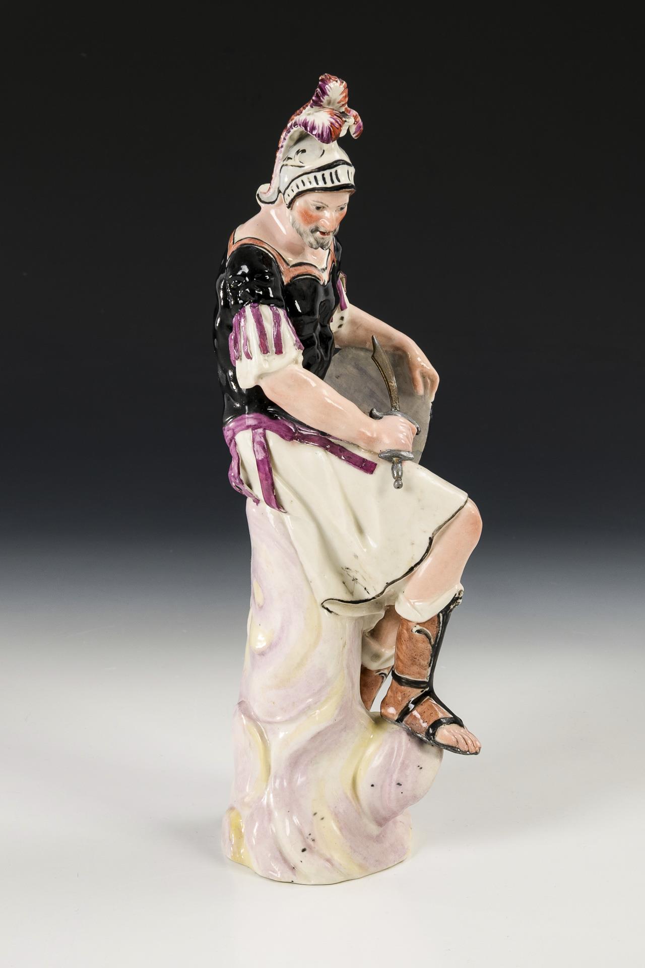 Aus der Reihe der Großen Planetengötter. Auf einem Wolkensockel sitzender Mars mit Schild, Helm und Schwert. Restauriert.