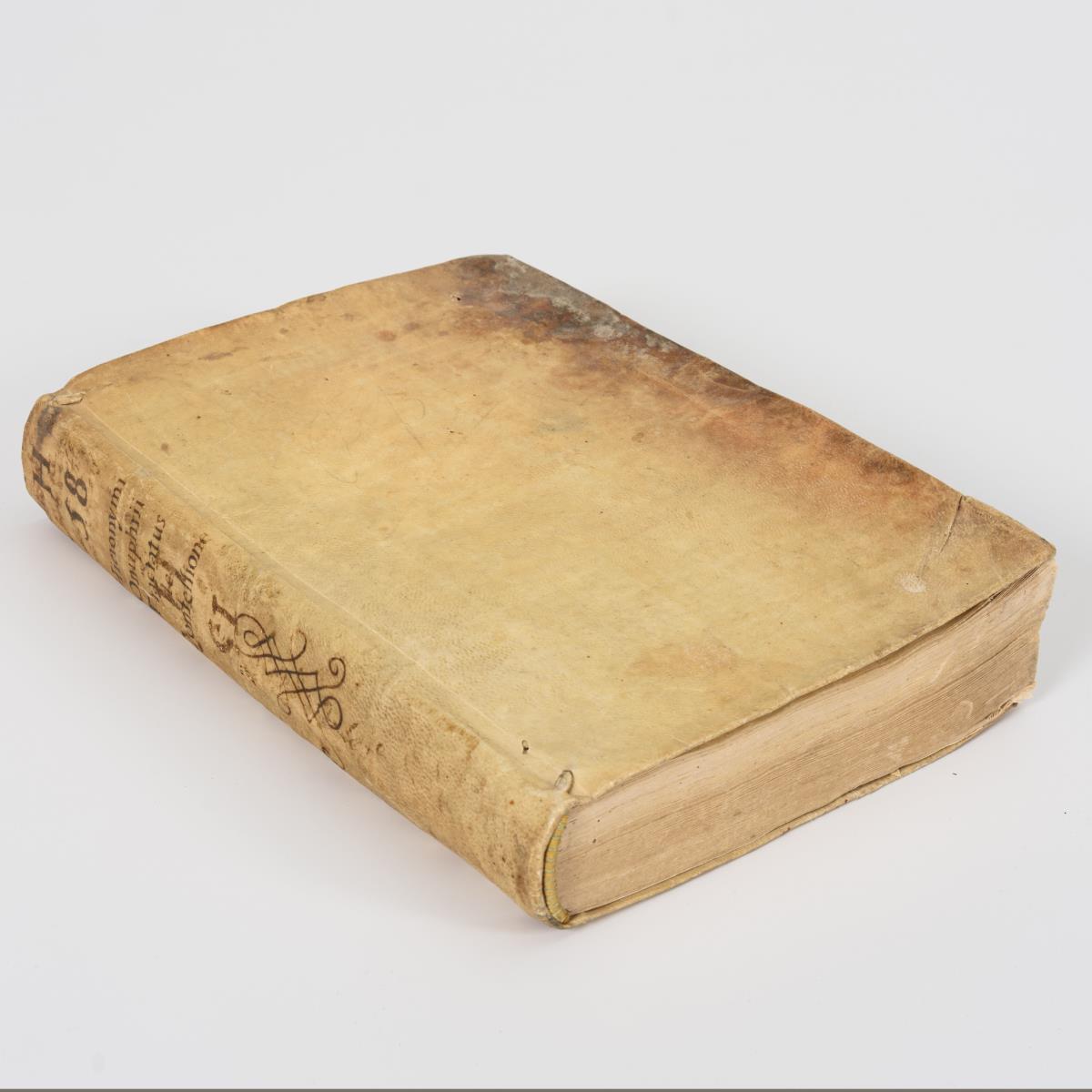 Titelblatt, (28), 496, (15) Seiten. Die ersten und letzten ca.10 Blätter stark am Rand ausgefranst. Geringe Fraßspuren im Bund. Pergamenteinband Broschur. Altersspuren.