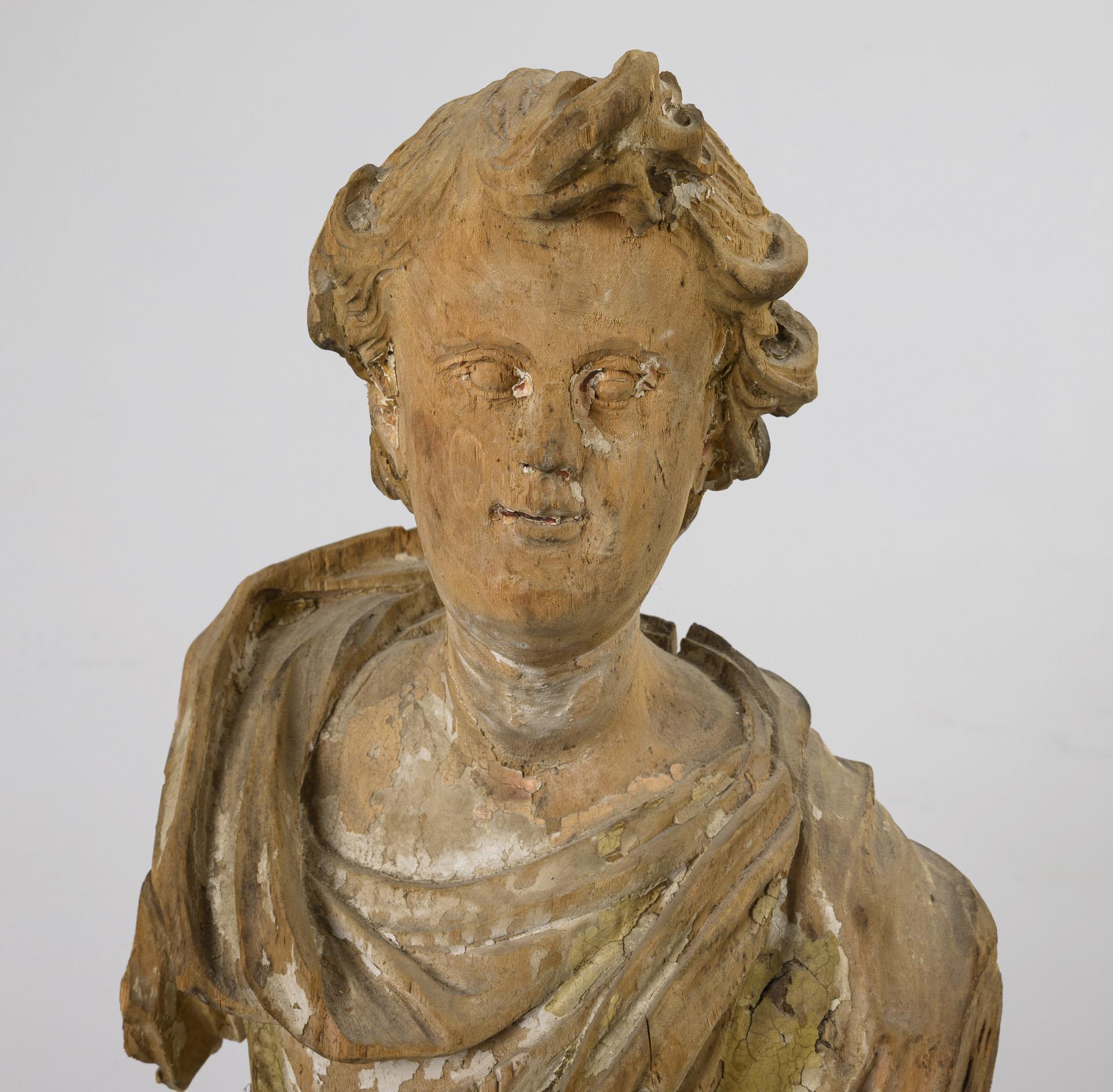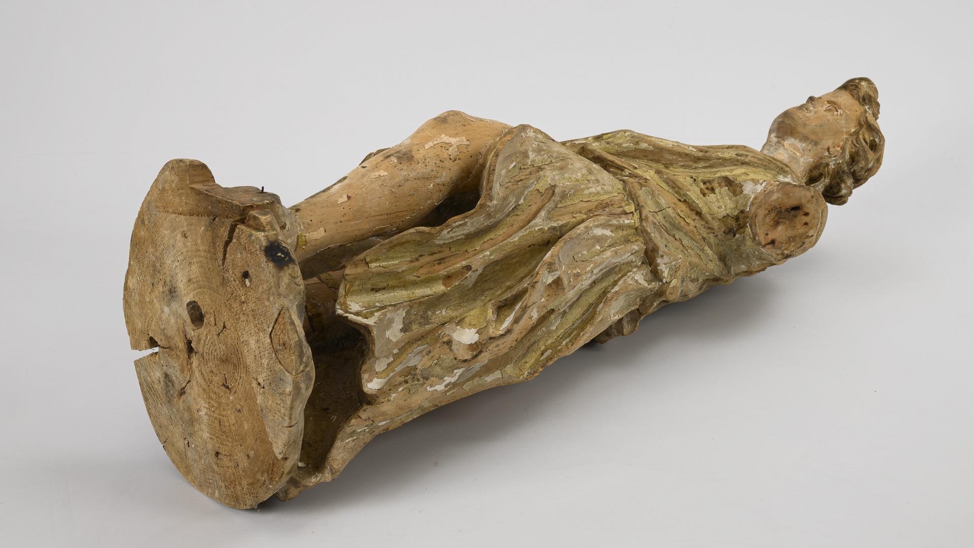 Nadelholz, Reste einer Grundierung/Fassung. Frühes 18. Jh. H 78 cm. 6,6 kg.