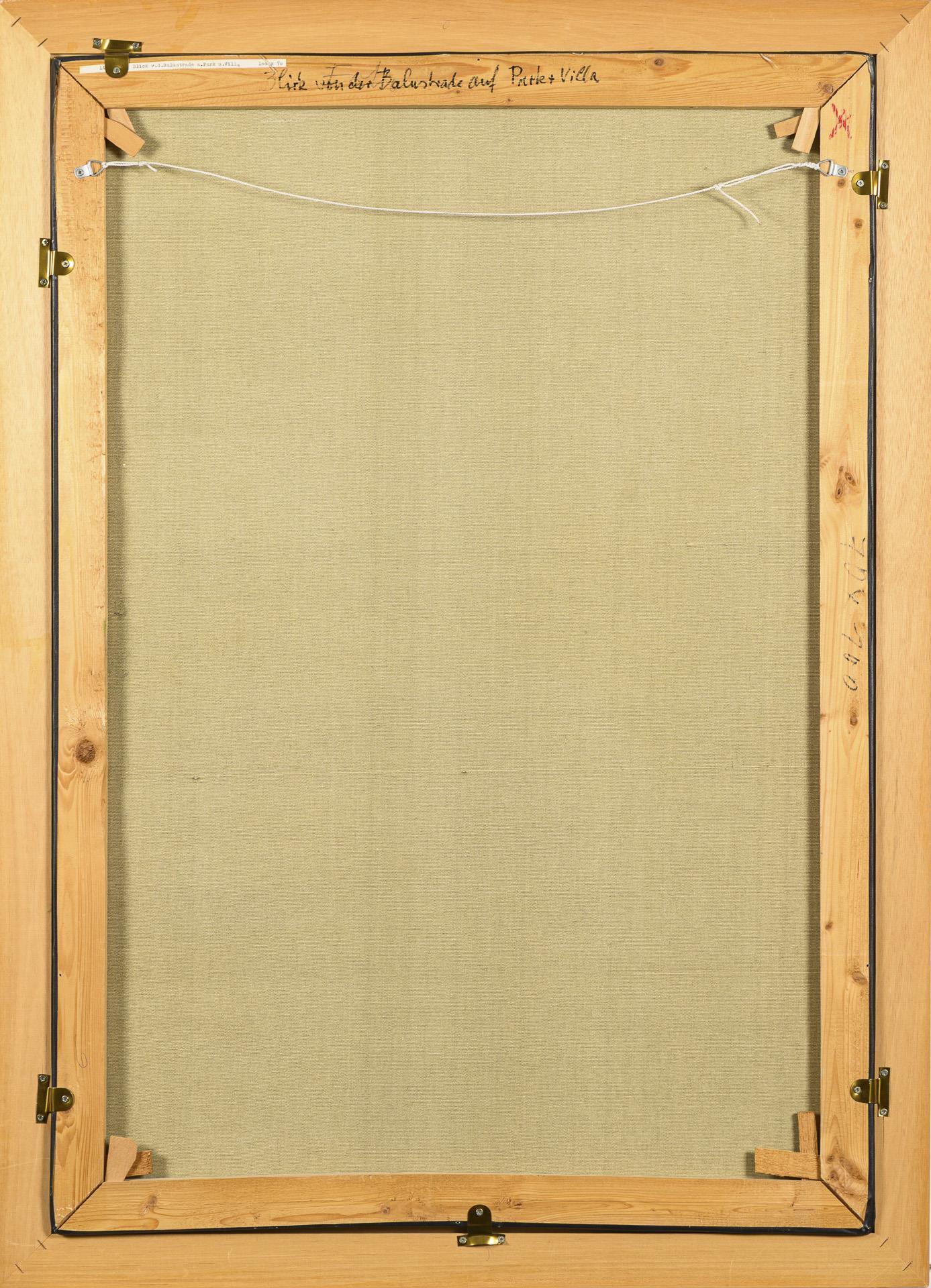 "Blick von der Balustrade auf Park und Villa"