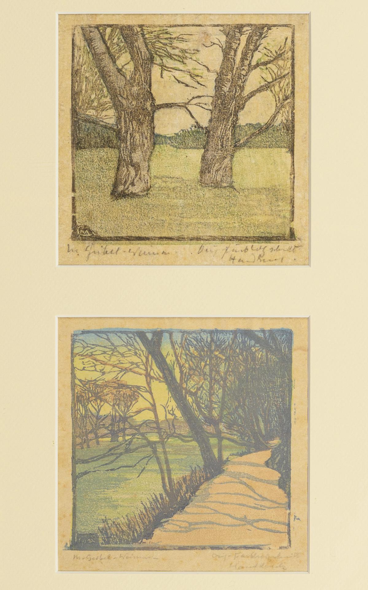 Farbholzschnitte. Je links unten signiert, je rechts unten undeutlich betitelt.