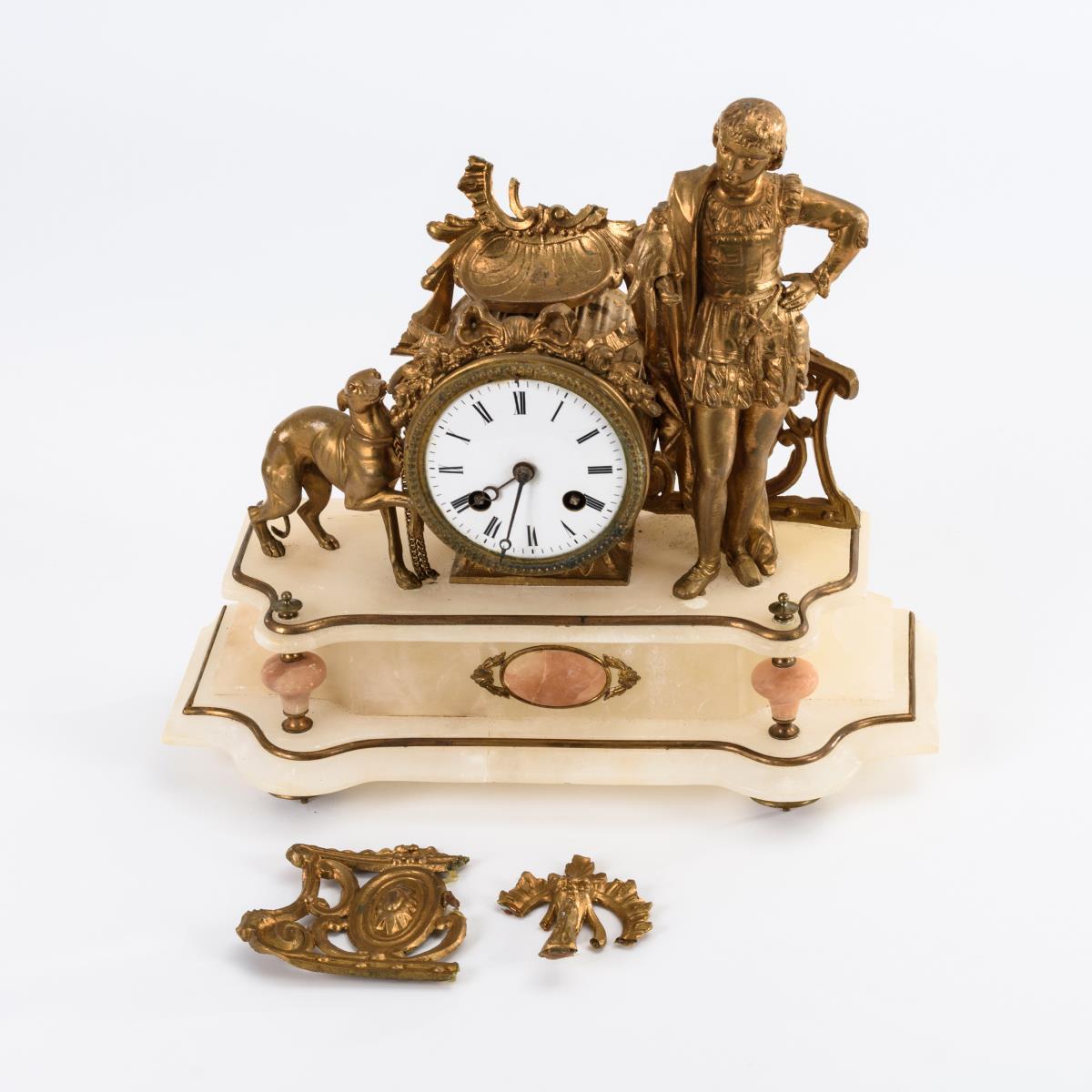 Bronzierter Metallguss, weißer Alabastersockel. 29 x 31,5 x 13 cm. 4,4 kg.