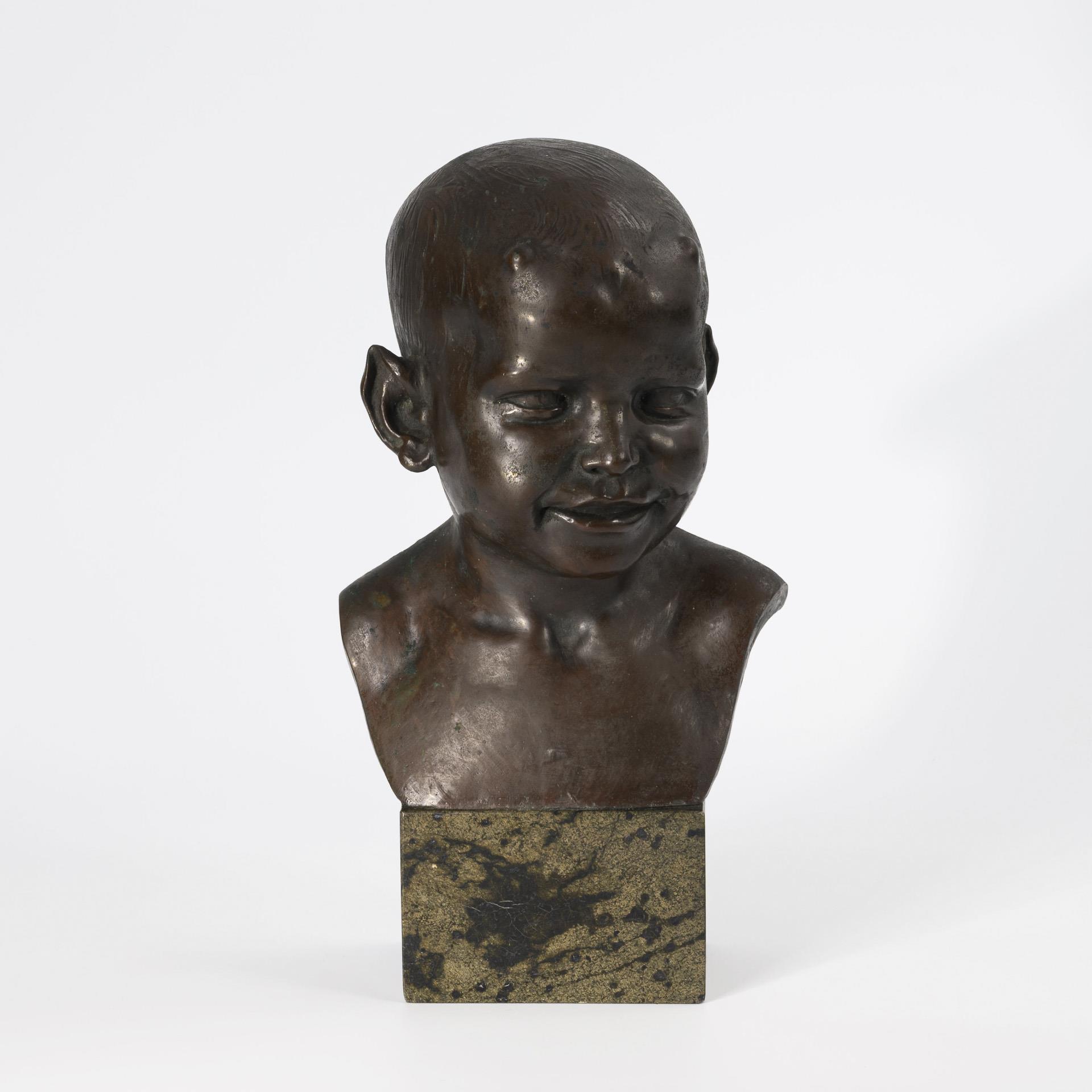 Lachendes Kind eines Fauns bzw. Satyrs. Patina teils mit "Grünspan".