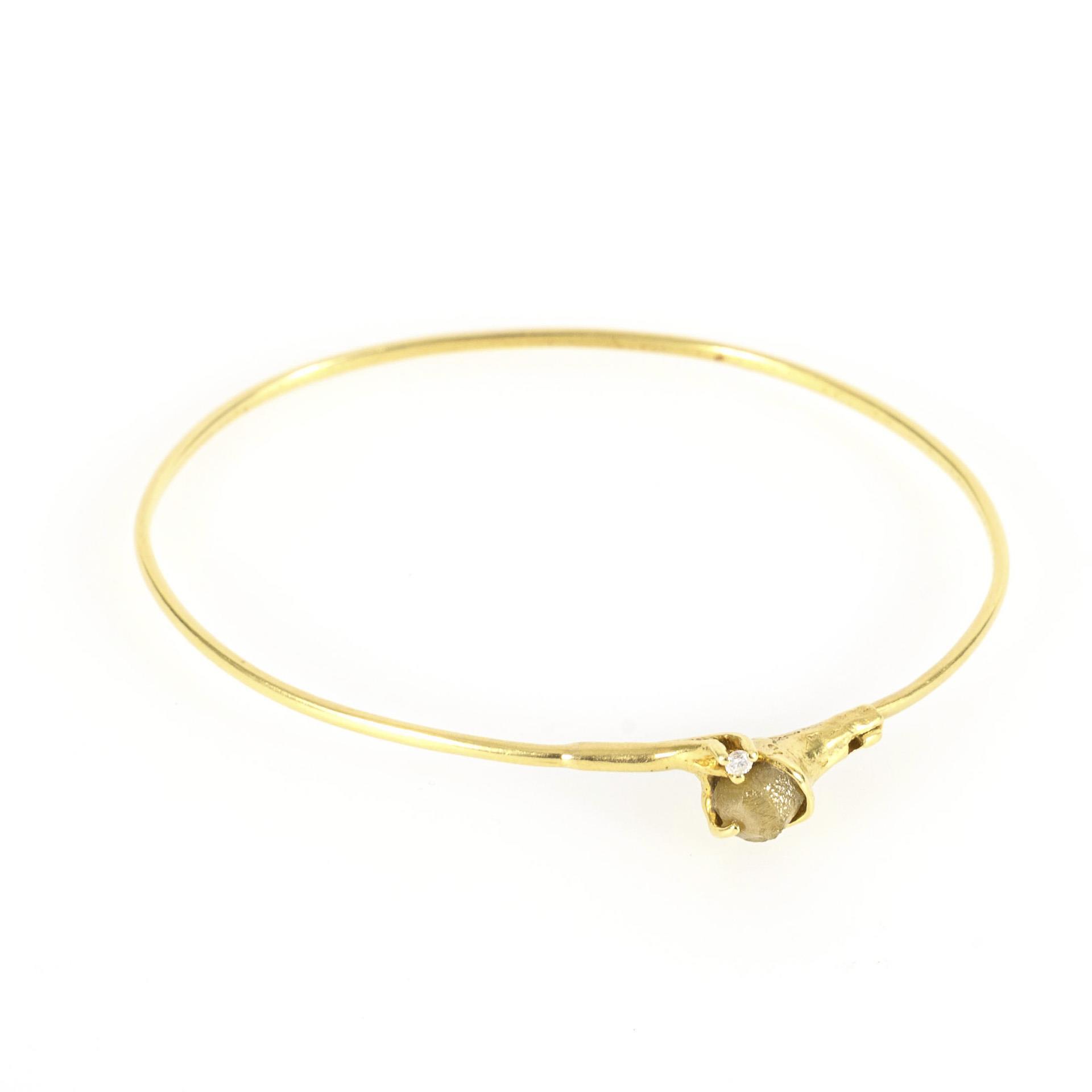 Zarter Armreif mit kleinem Brillant und Rohdiamanten. Leichte Tragespuren.