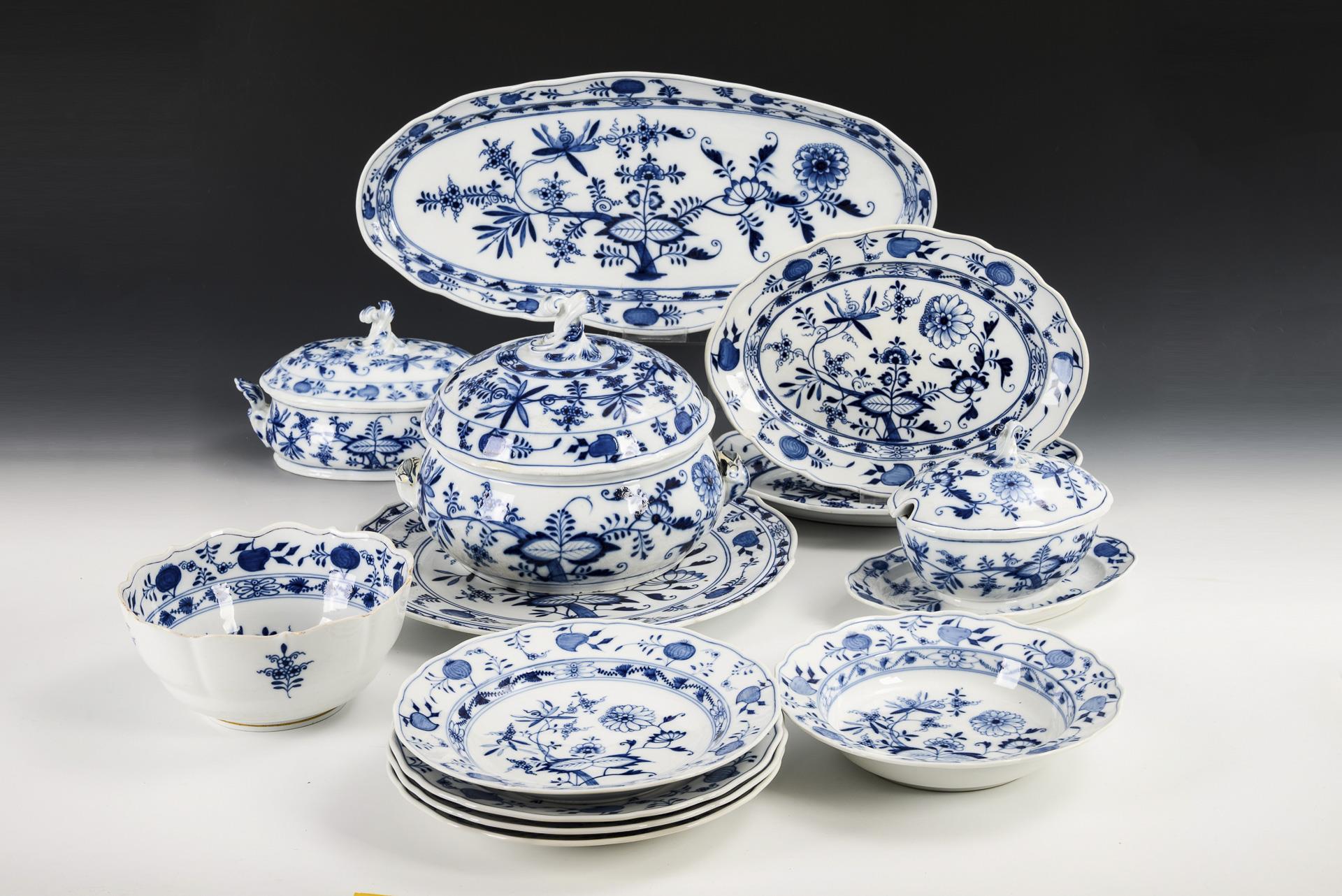 12+1 Teile Zwiebelmuster-Speisegeschirr. Meissen.