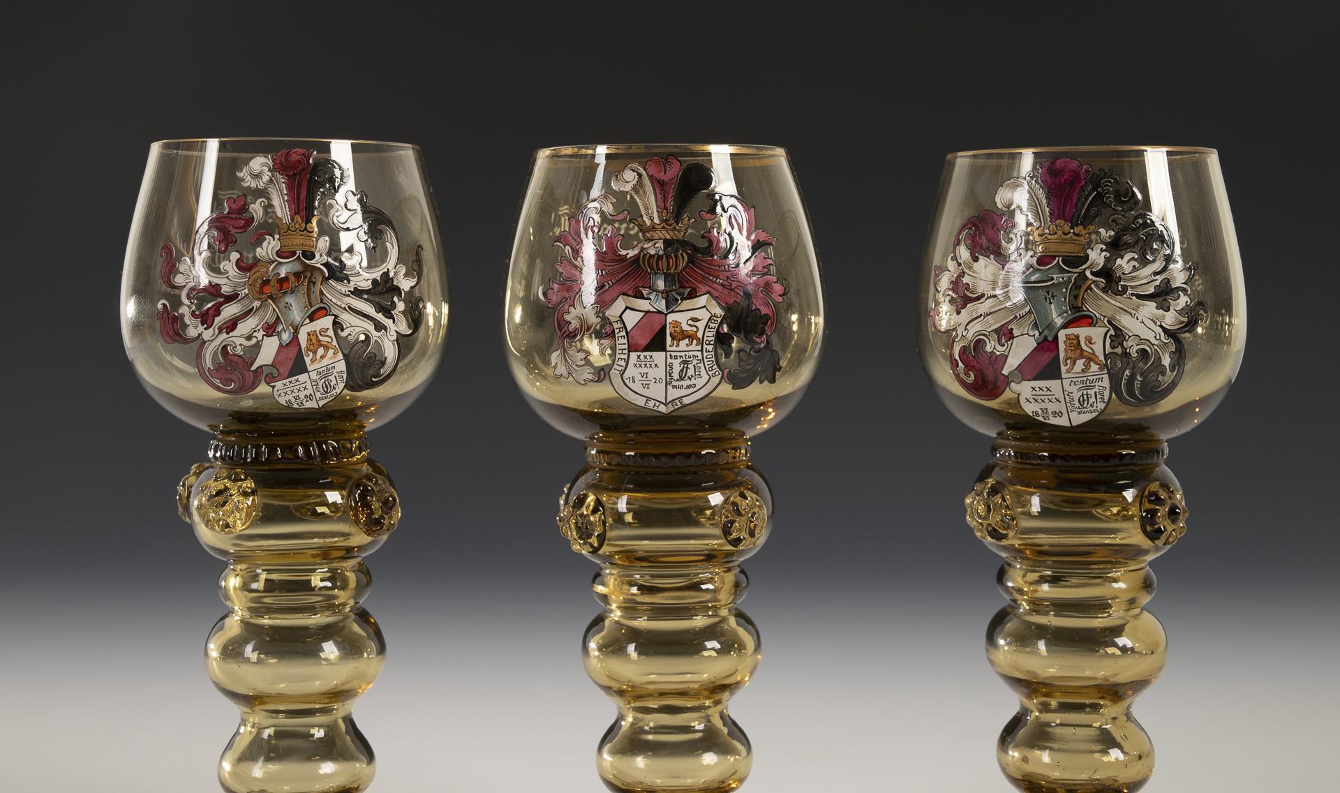 Sie befinden sich hier: Startseite Kategorien Varia 3 studentische Historismus-Römer mit Verbindungs-Wappen Corps Thuringia Jena
