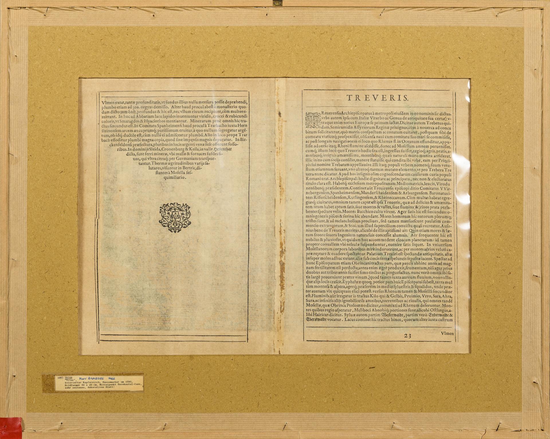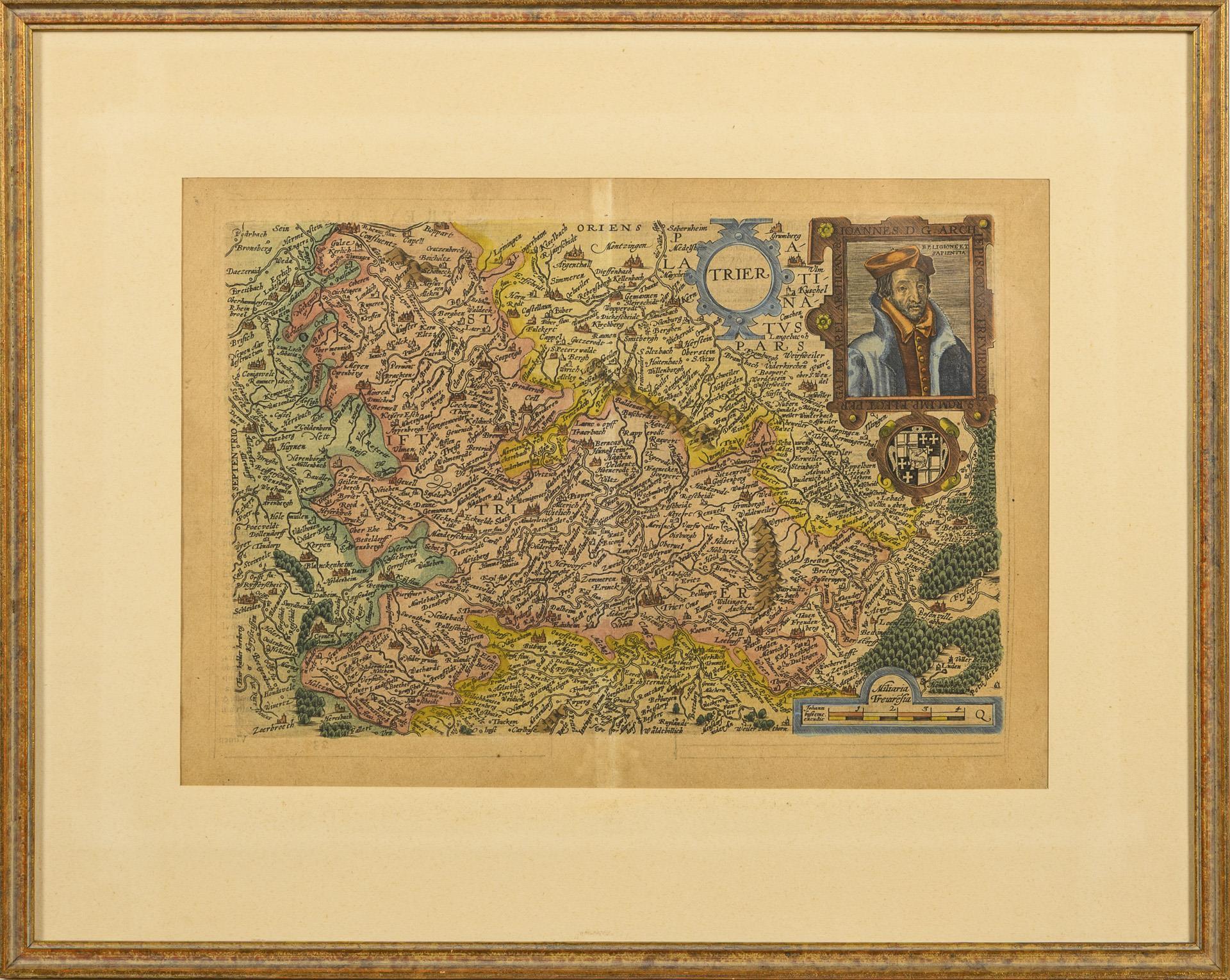 Darstellung des Erzbistums sowie eines Porträts wohl von Erzbischof Johann VII. von Schönenberg. Mittelfalz.