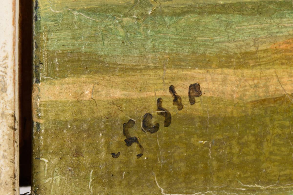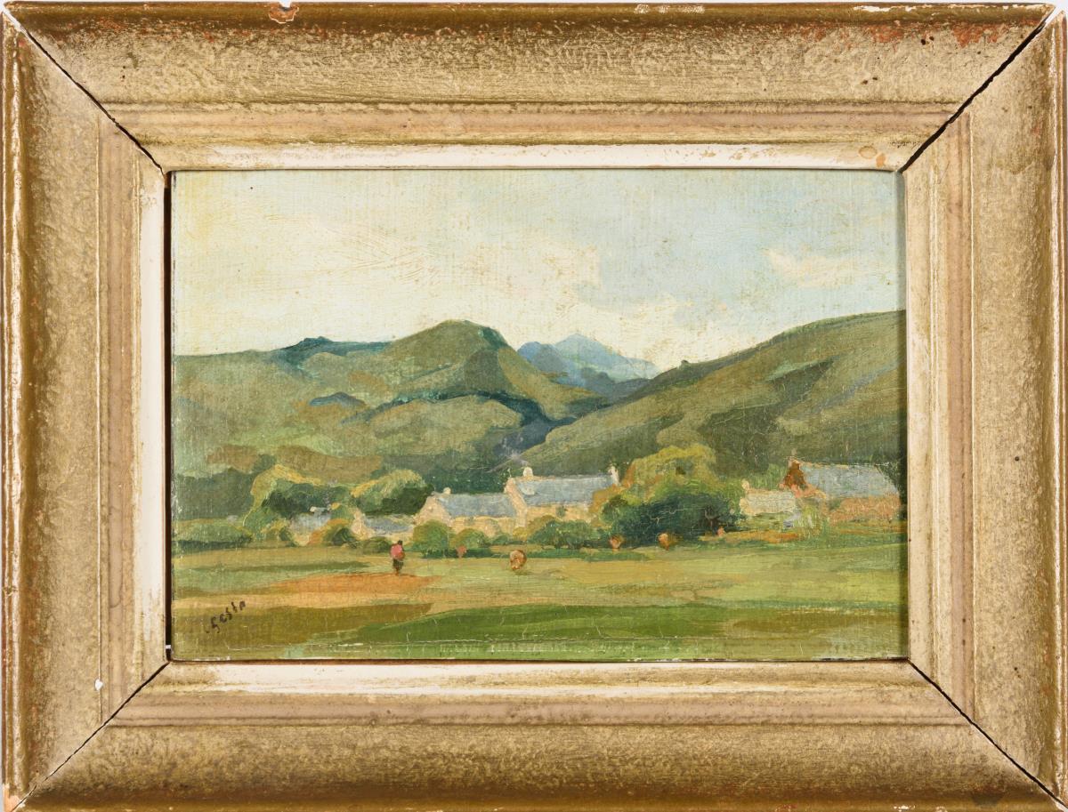 Staffagefigur vor dem Dorf. Minimale Altersspuren.