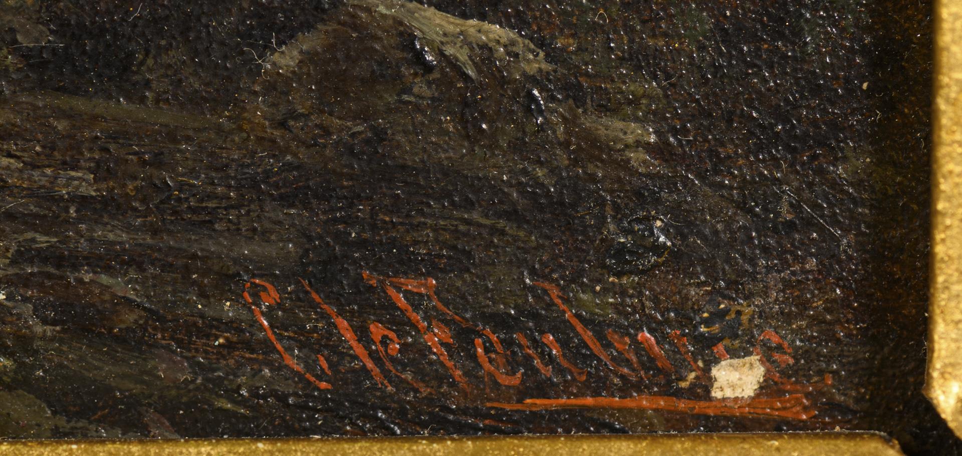Öl/Malkarton. Rechts unten unterm Rahmen undeutlich signiert.