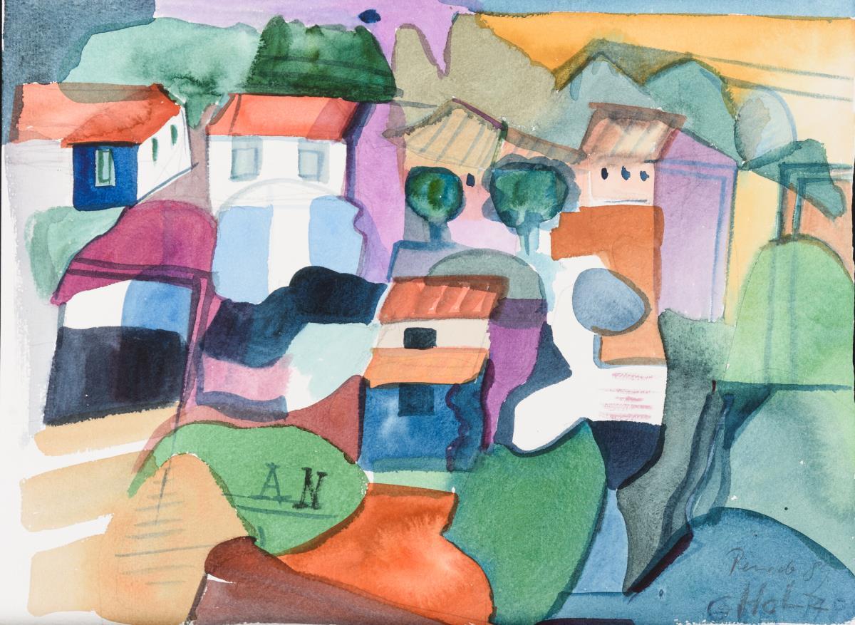 2 expressive Darstellungen des Dorfes Penedo/Portugal, betitelt "Penedo".