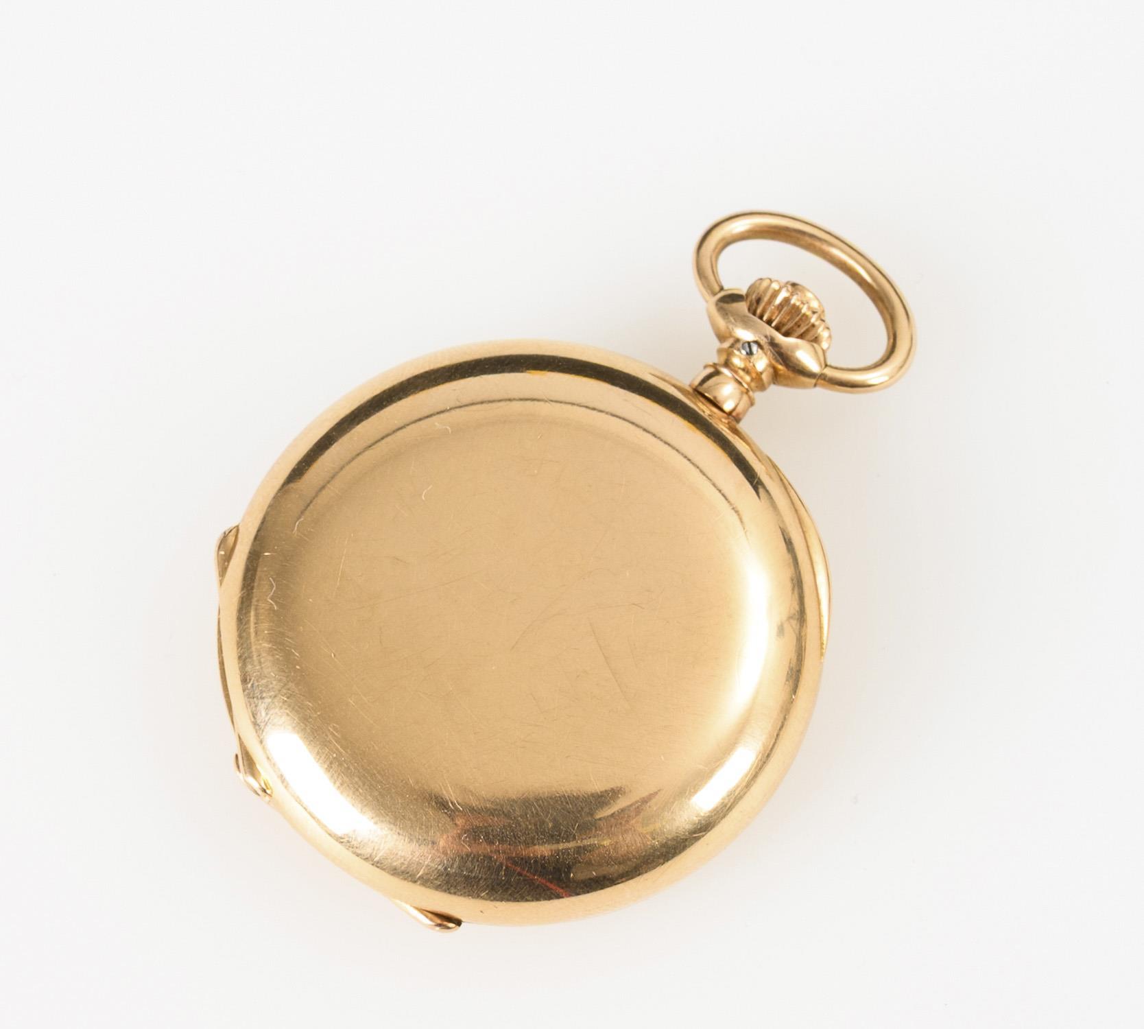 18 k gepunzt, Firmenmarke AL & S, goldener Staubdeckel. Ø 3,4 cm. 37 g.