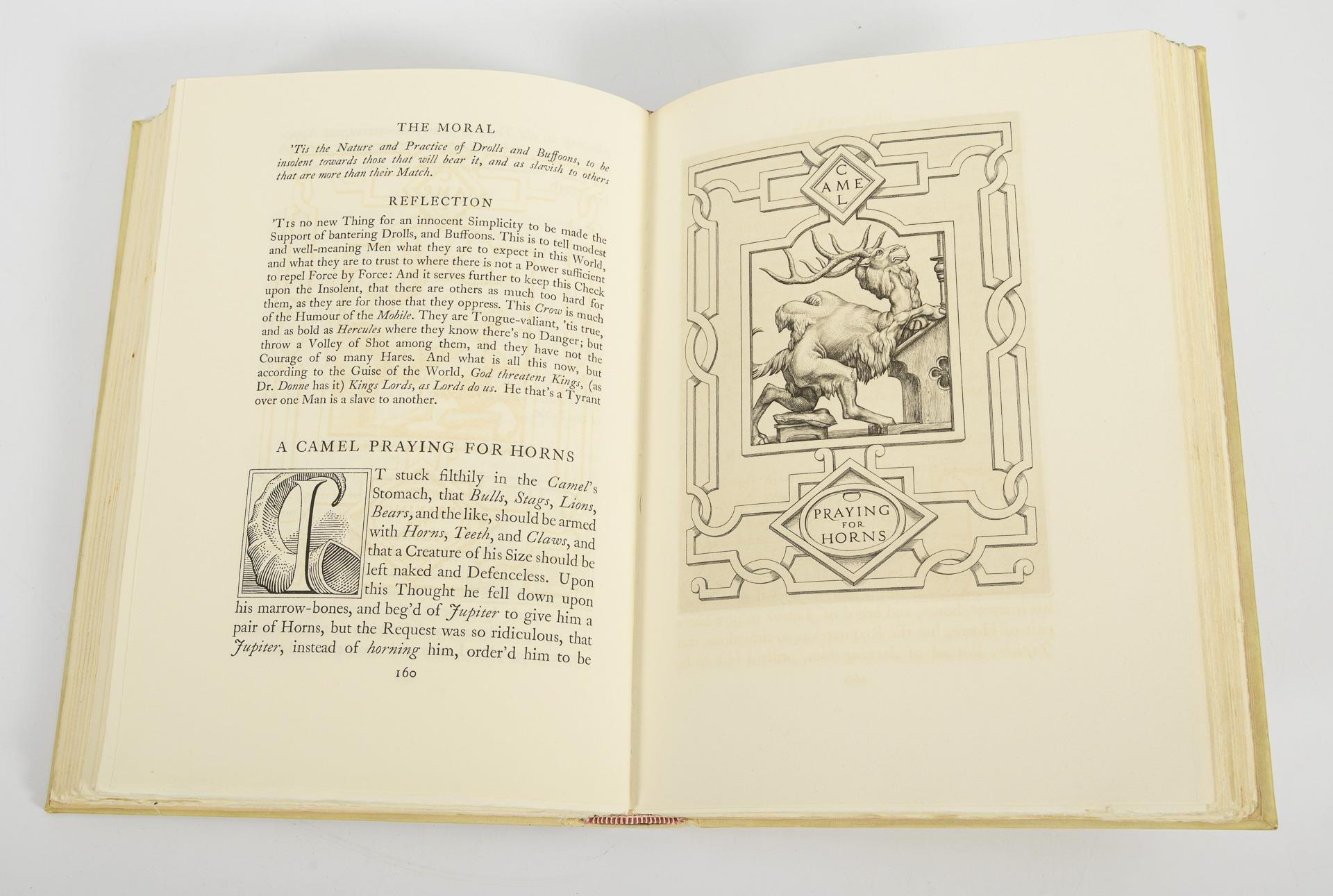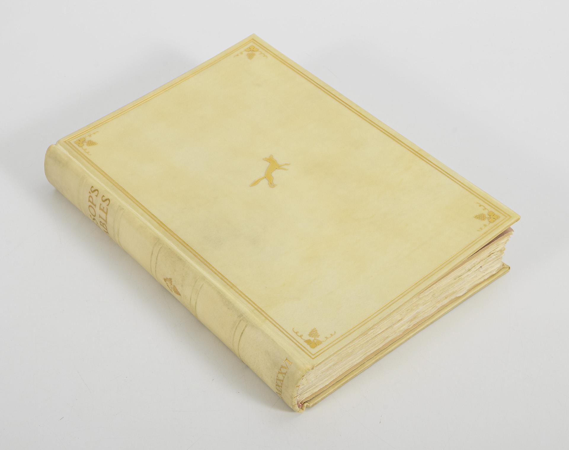 Translated by Sir Roger L'Estrange. Nummeriertes Exemplar 12 von 525, Originalsignatur des Künstlers. 314 Seiten auf Büttenpapier und mehrere ganzseitige Illustrationen im goldgeprägten Pergamenteinband, im Schuber. Im Vorsatz Spuren eines alten Klebezettels, Schuber mit Altersspuren.