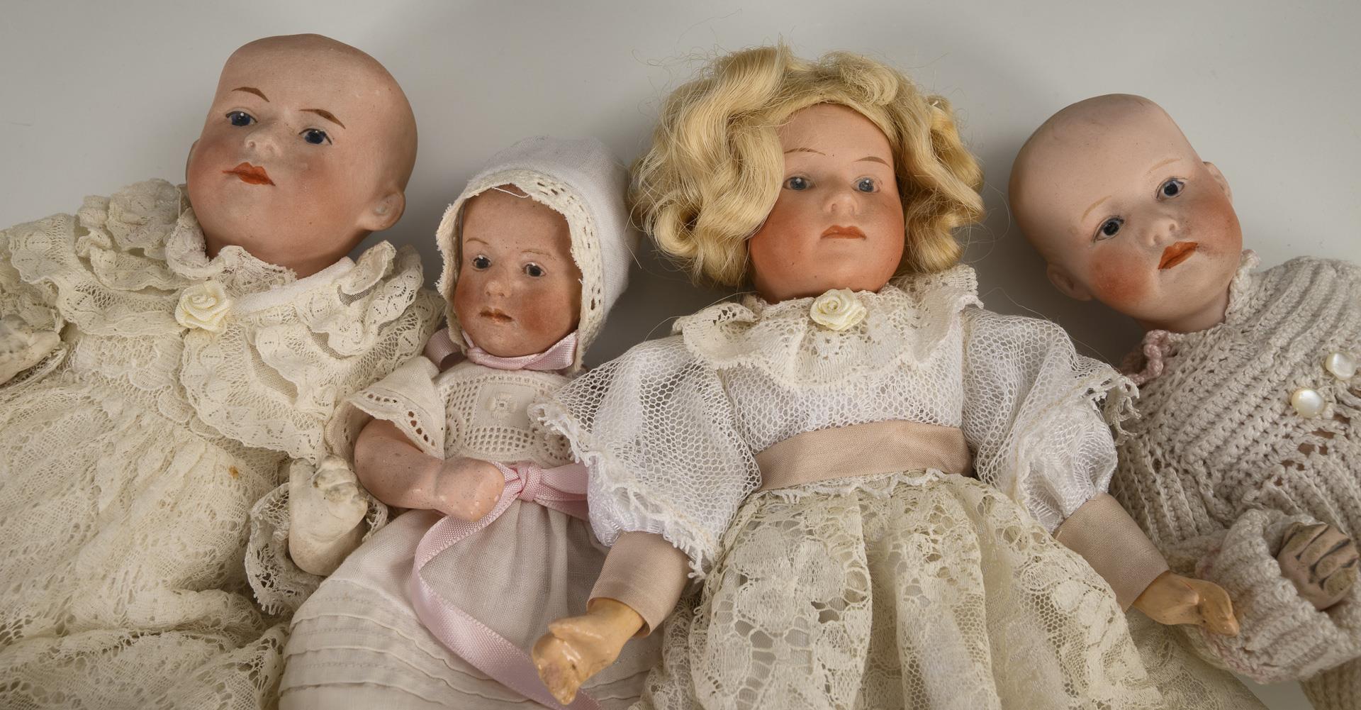 4 kleine Puppen mit Heubach-Köpfen. Gebrüder Heubach.