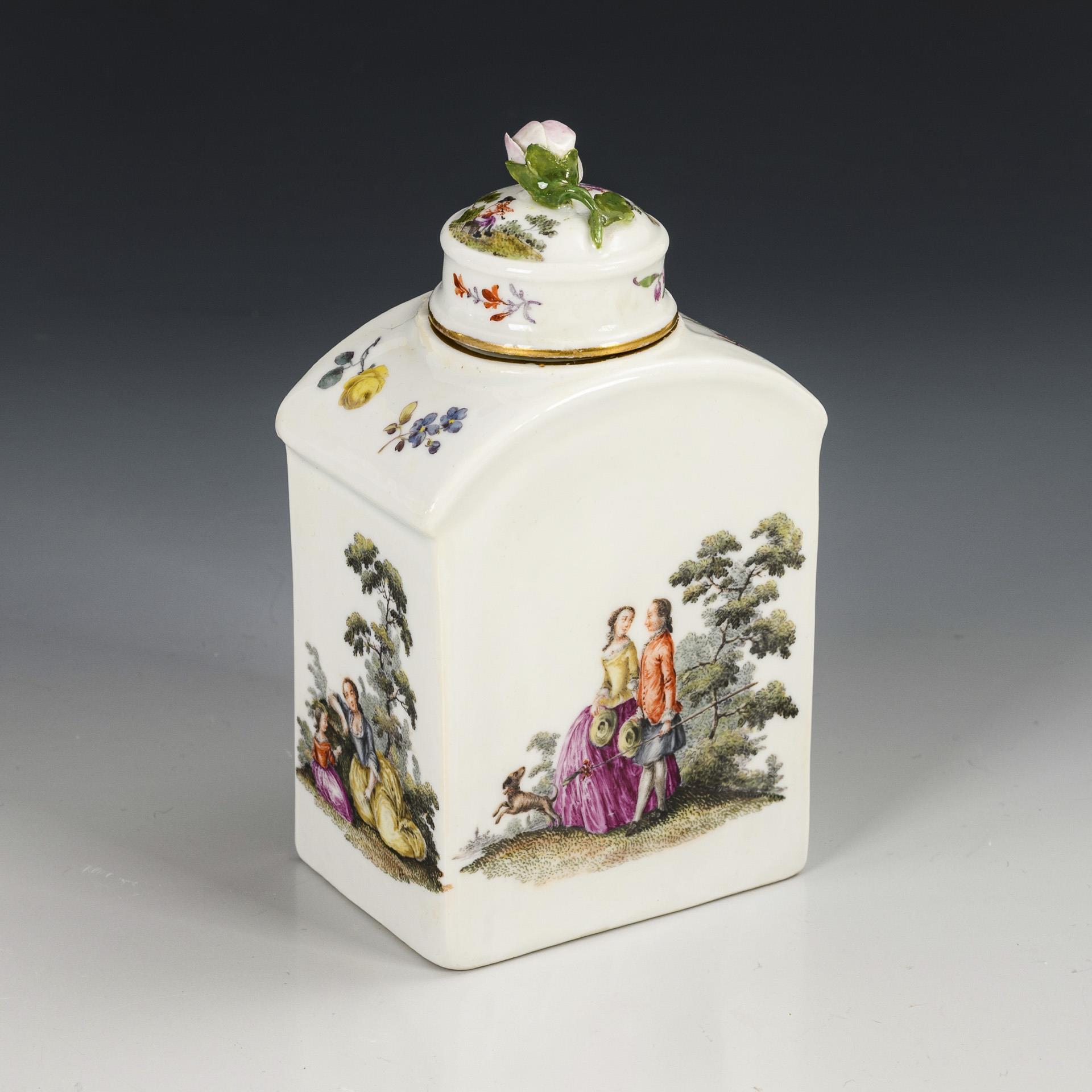 Barocke Teedose mit Watteau-Malerei. Meissen.