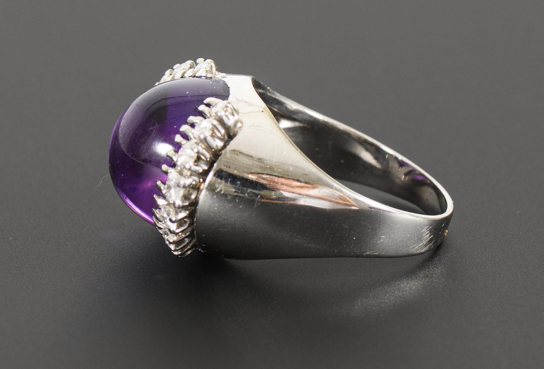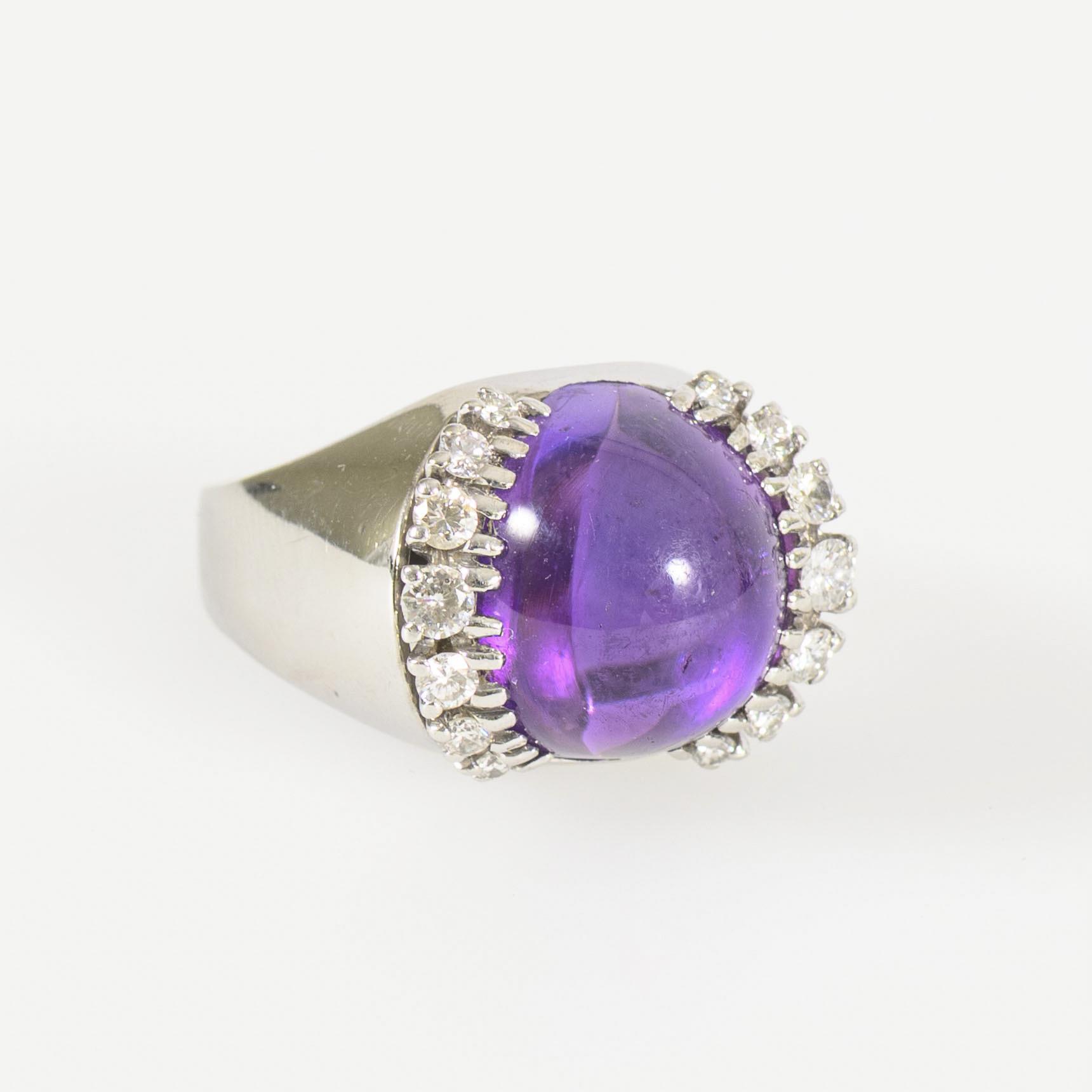 Sie befinden sich hier: Startseite Kategorien Schmuck Ungewöhnlicher Cocktail-Ring mit Amethyst-Cabochon und Brillanten