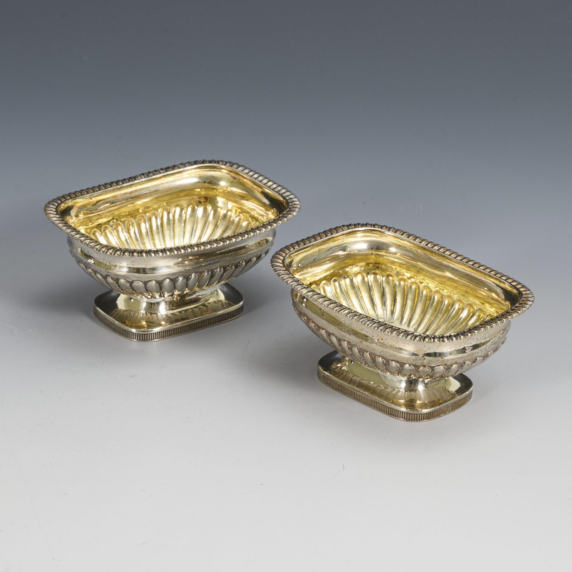 2 gerippte Fußschälchen, innen vergoldet. Unterseitig Lötstellen.