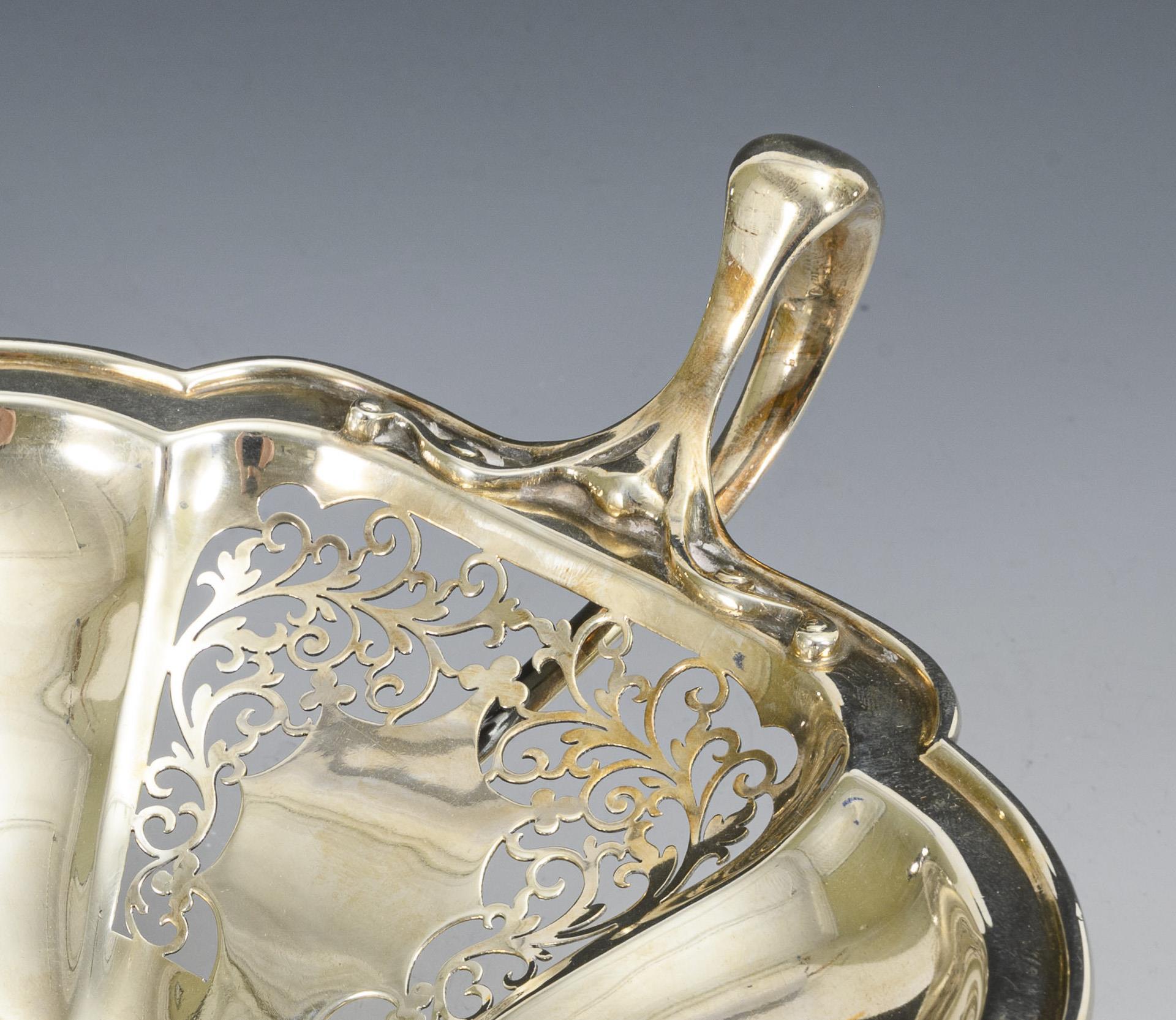 Elegante, floral durchbrochene Schale auf 4 geschwungenen Volutenfüßchen.