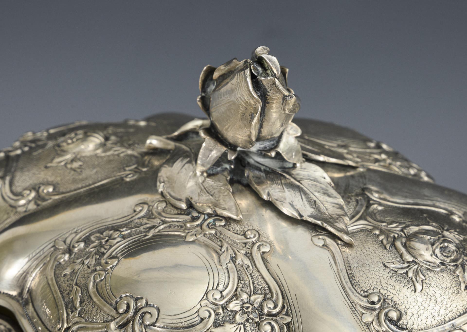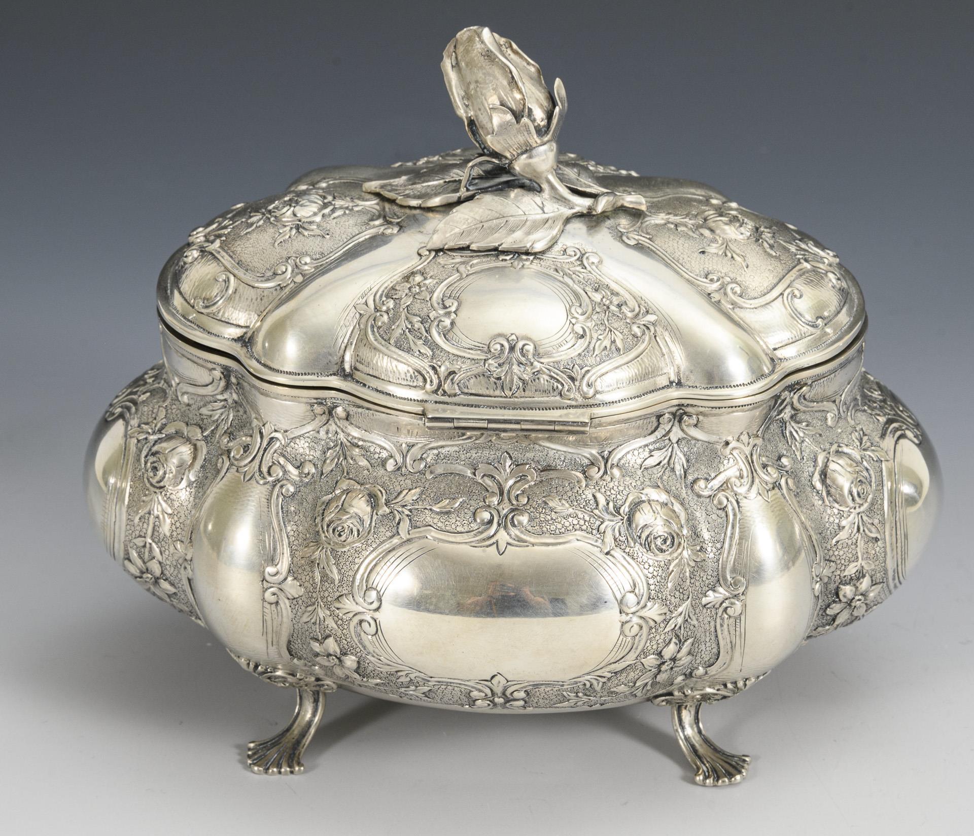 Silberne Gebäckdose mit Rosenknauf. Wilhelm Ludwig, Hanau.