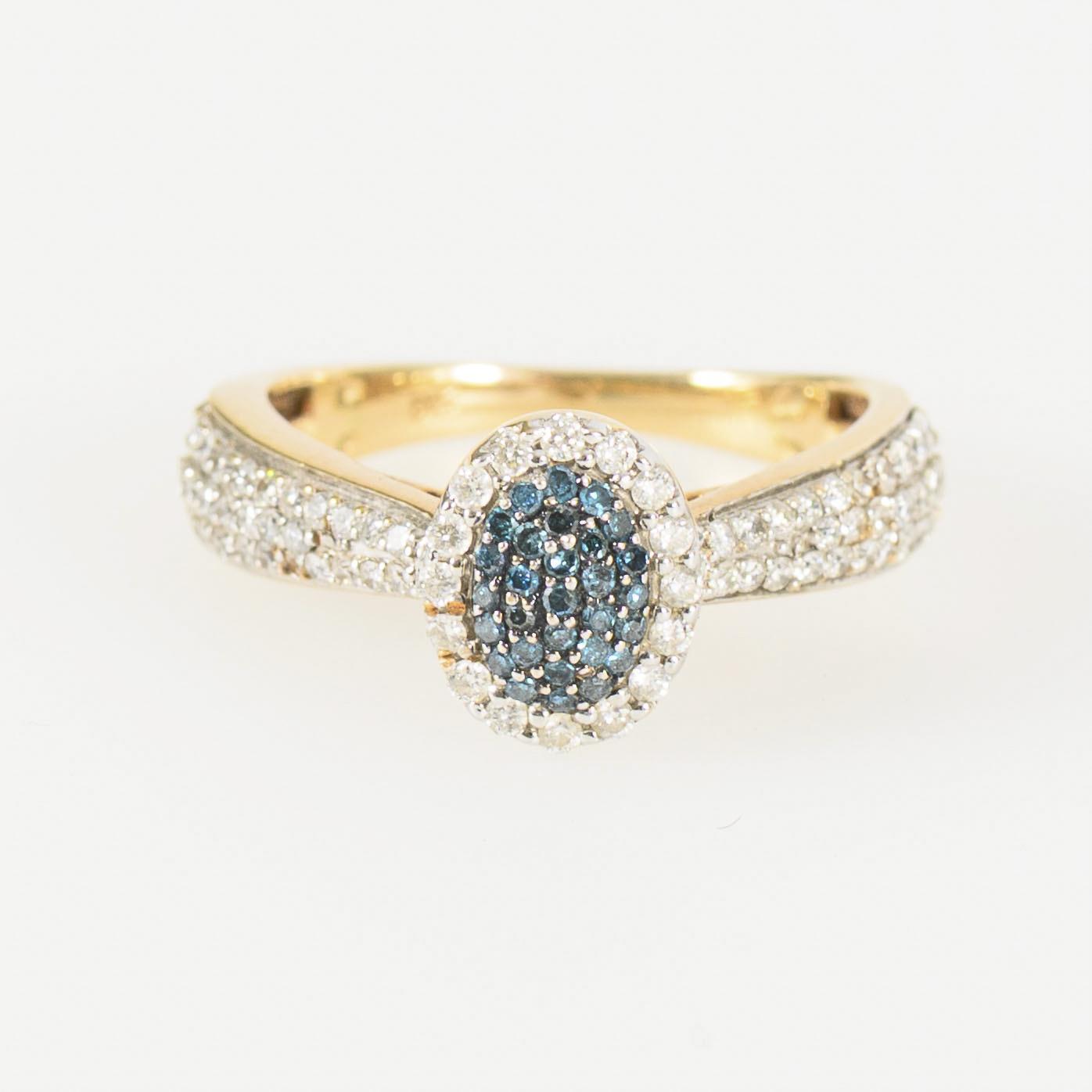 Sie befinden sich hier: Startseite Kategorien Schmuck Ring mit kleinen Brillanten und grün-blauen Farbsteinen in Pavéfassung