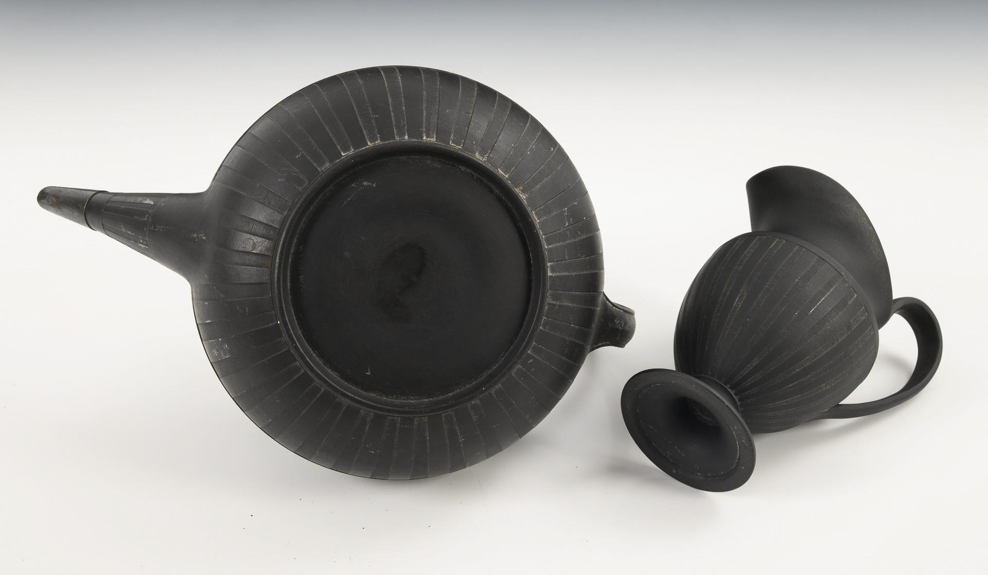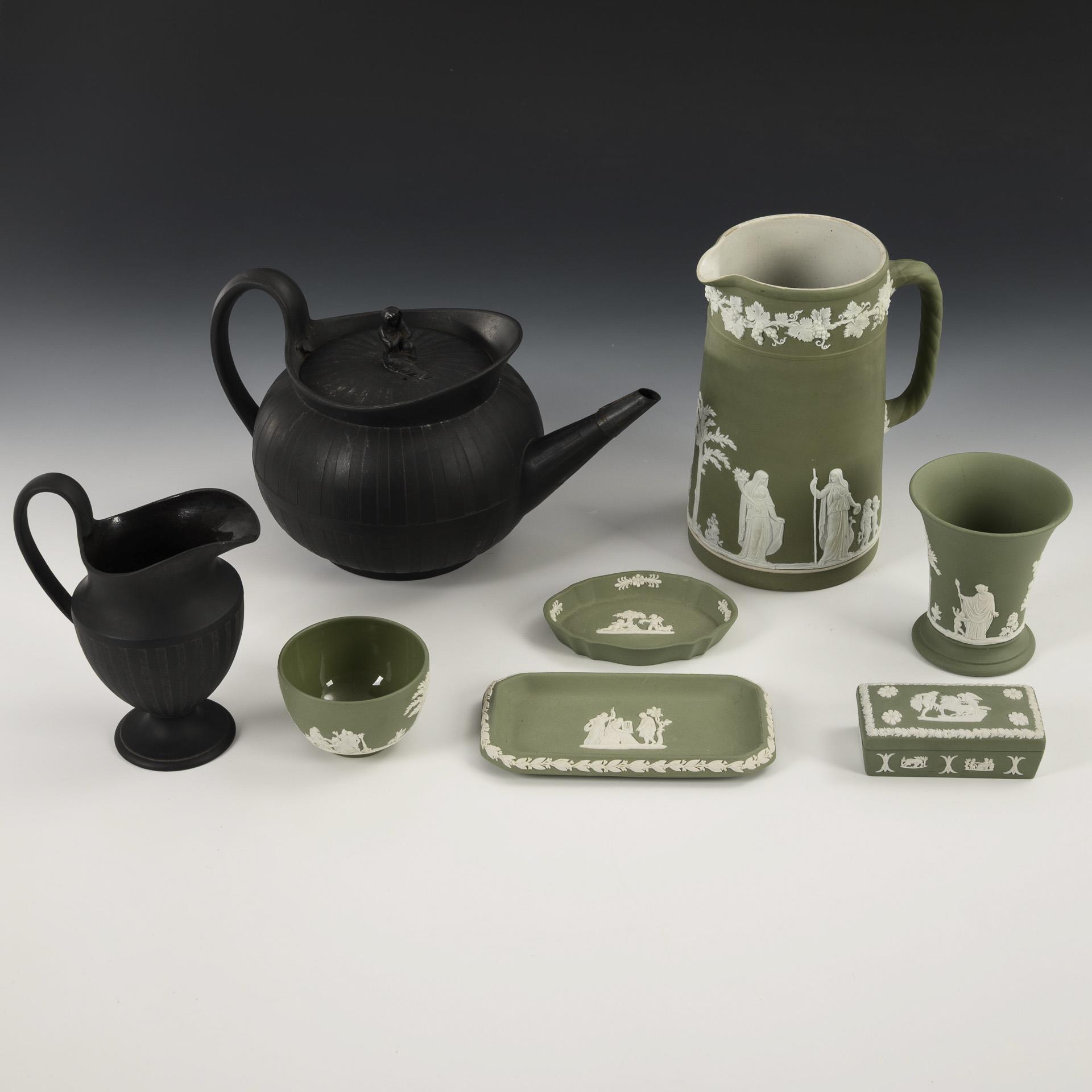 6 x Wedgwood grün-weiß + 2 Wedgwood-Kannen Basaltware. Wedgwood.
