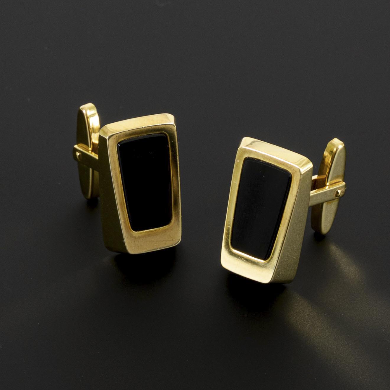 Paar Manschettenknöpfe mit Onyx-Tafel.