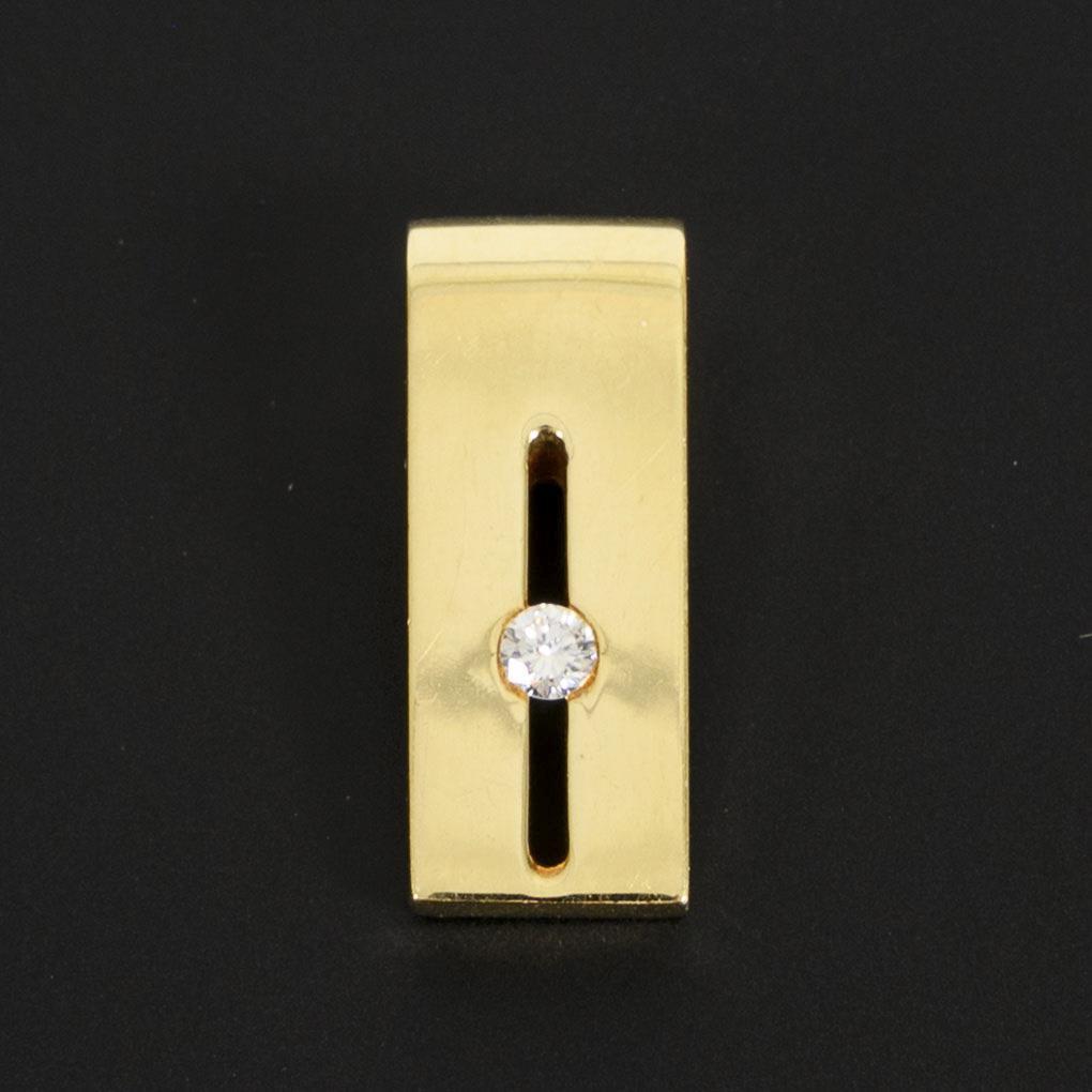 Gelbgold 585 gestempelt. Max. ca. 24,58 x 9,55, der Brillant 010 [0,10 ct] gestempelt. 8,42 g.