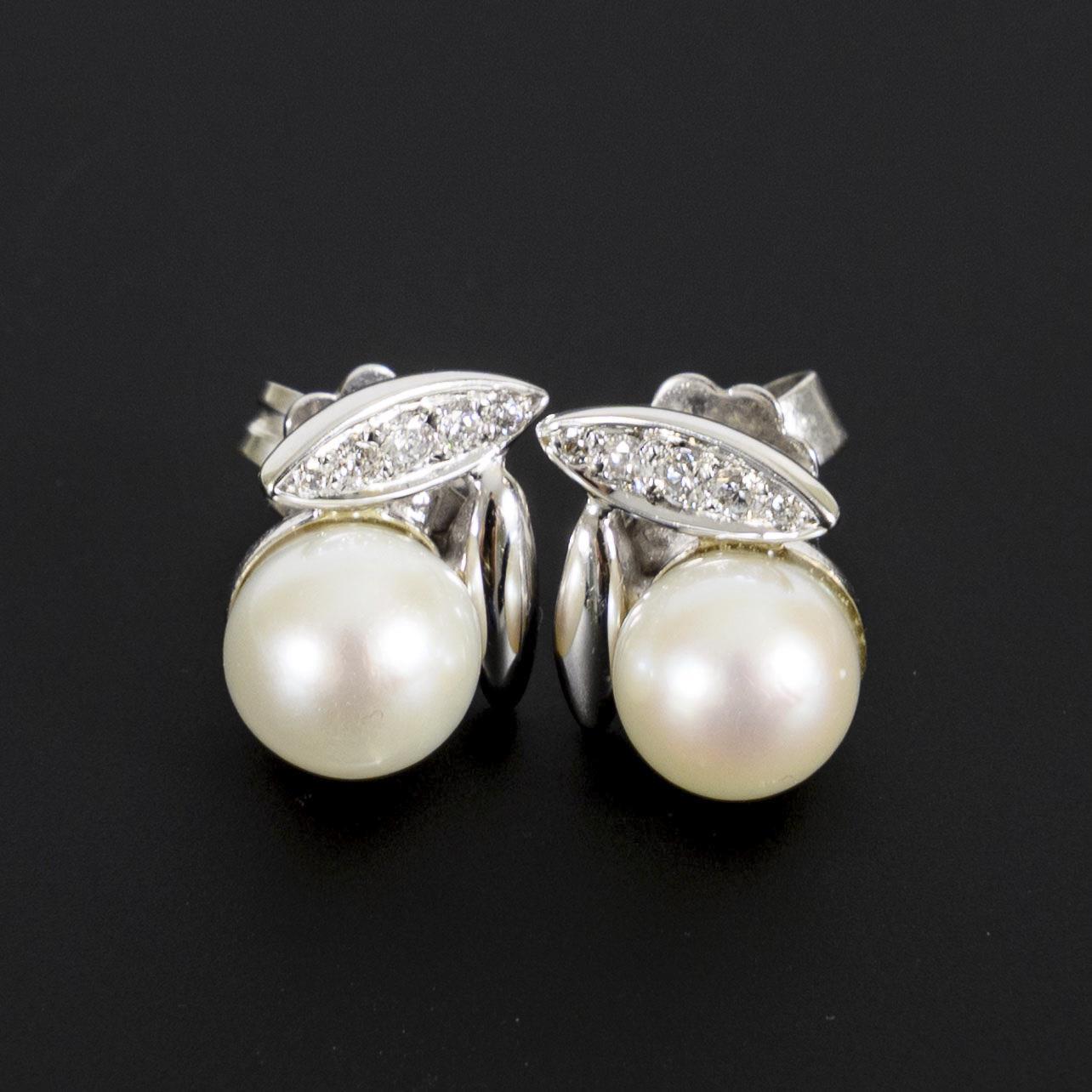 Ohrsteckerpaar mit Akoya-Zuchtperle und Brillanten.