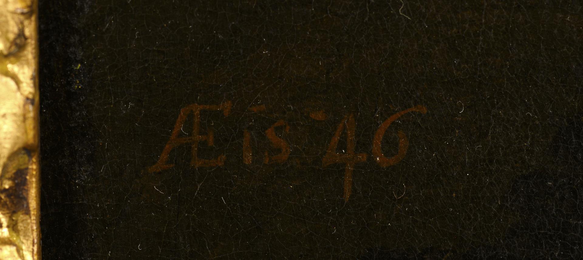 73 x 59 cm. Gerahmt : 89 x 76 cm (teils goldener Stuckrahmen).